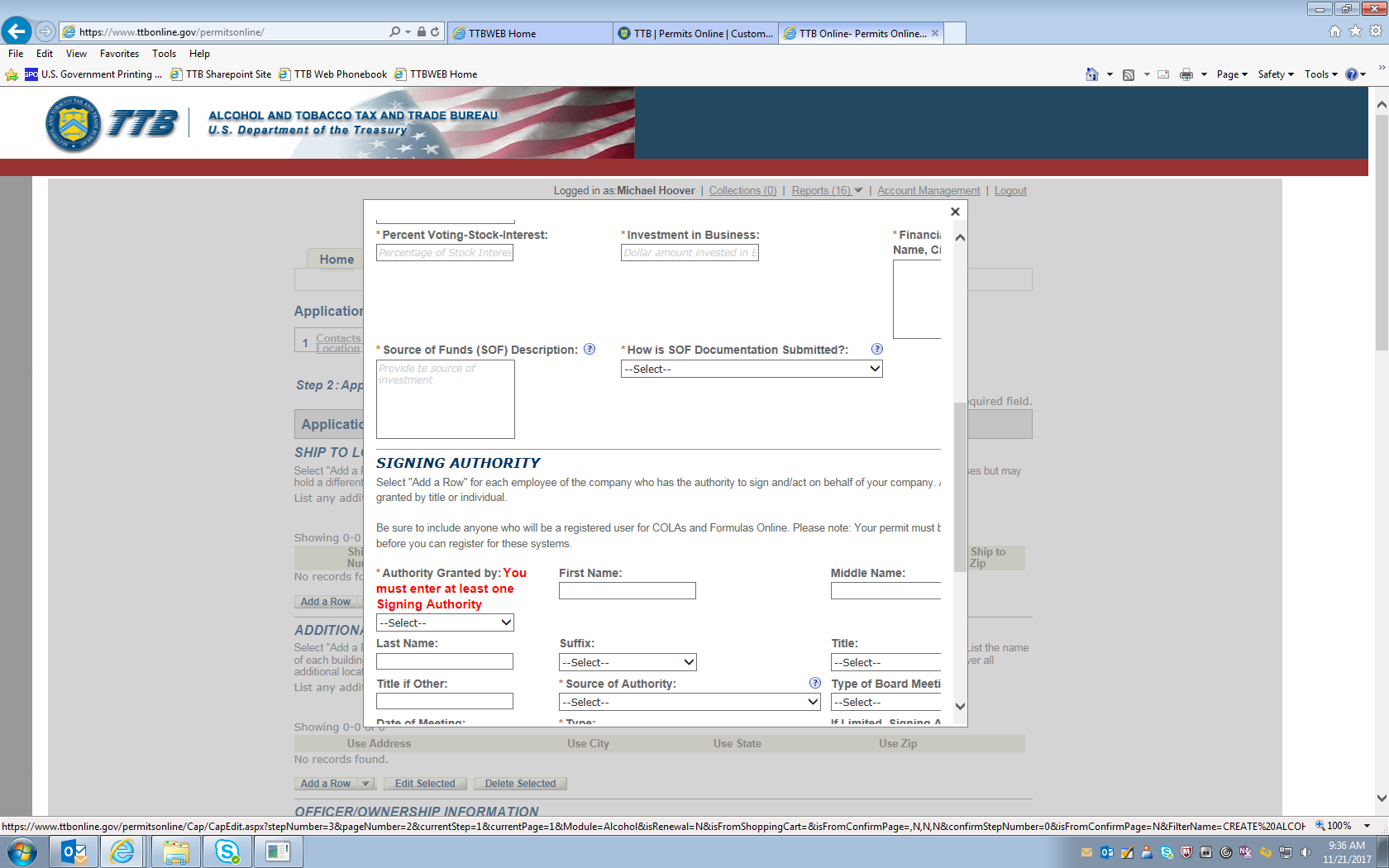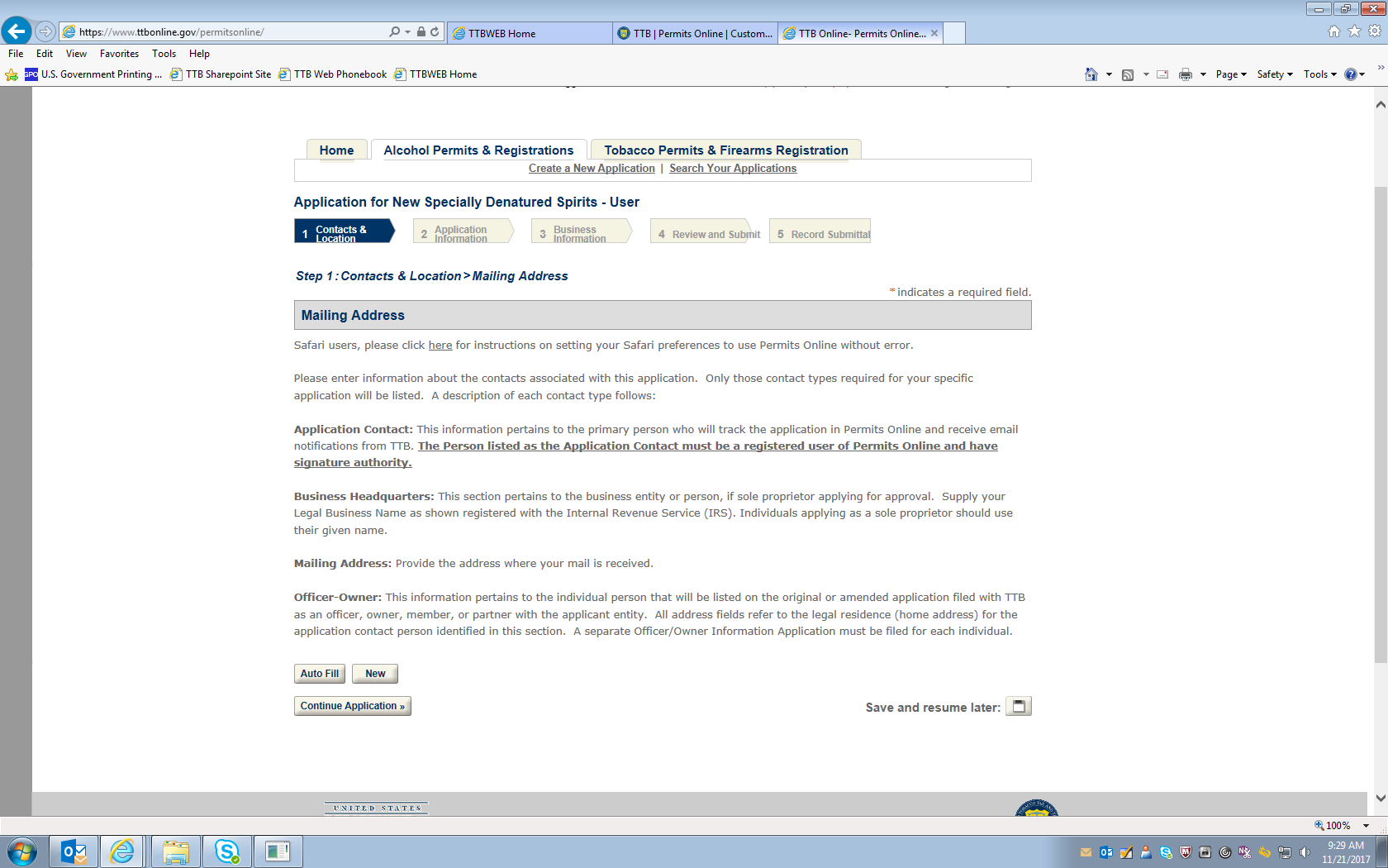Permits Online (PONL): Application for New Specially Denatured Spirits – User