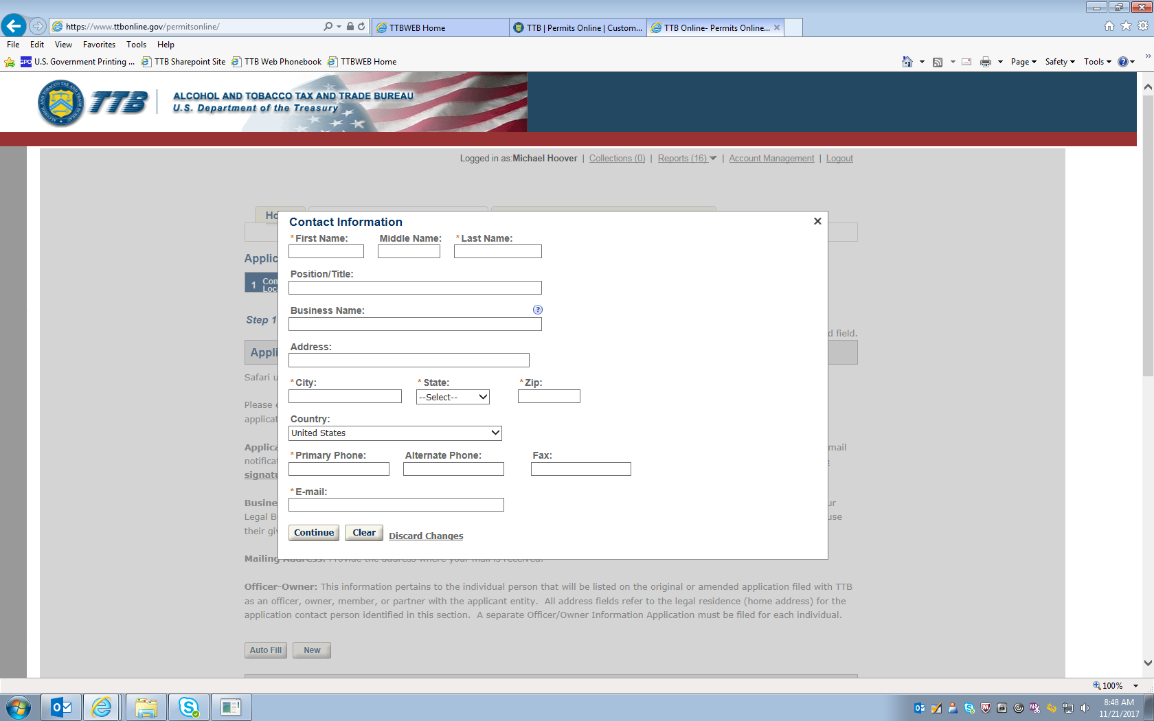 [The screens that follow allow the user to review the submitted information and then submit the completed application to TTB.]
