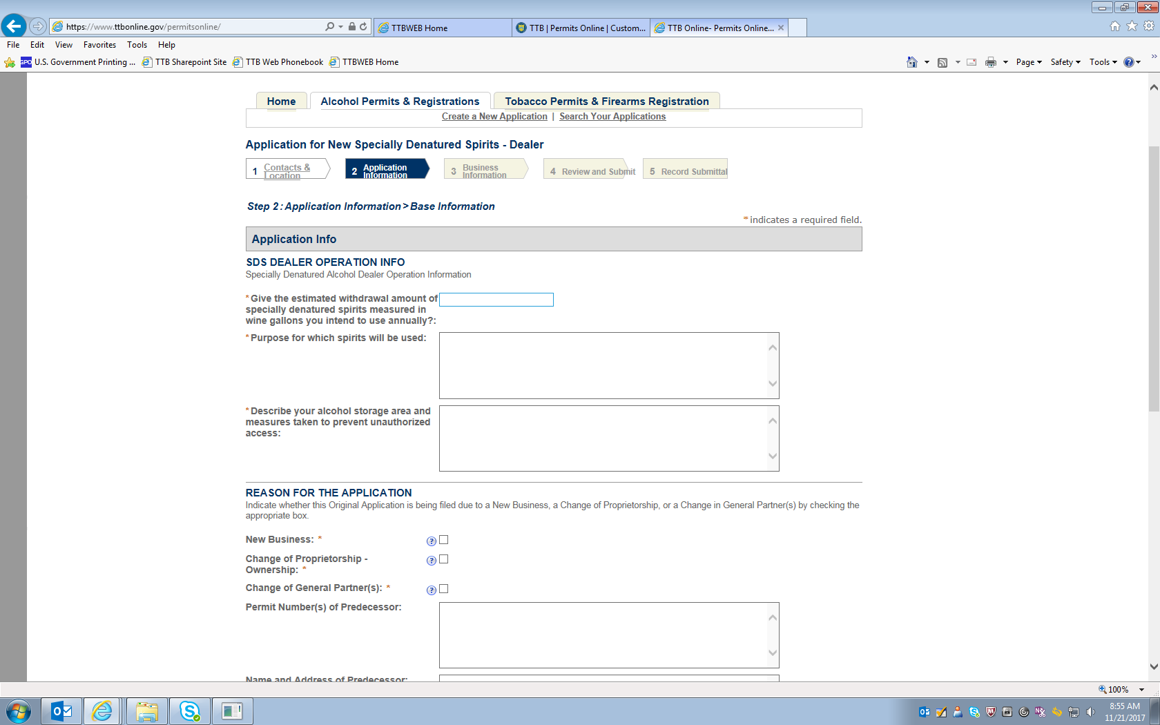 Permits Online (PONL): Application for New Specially Denatured Spirits – Dealer