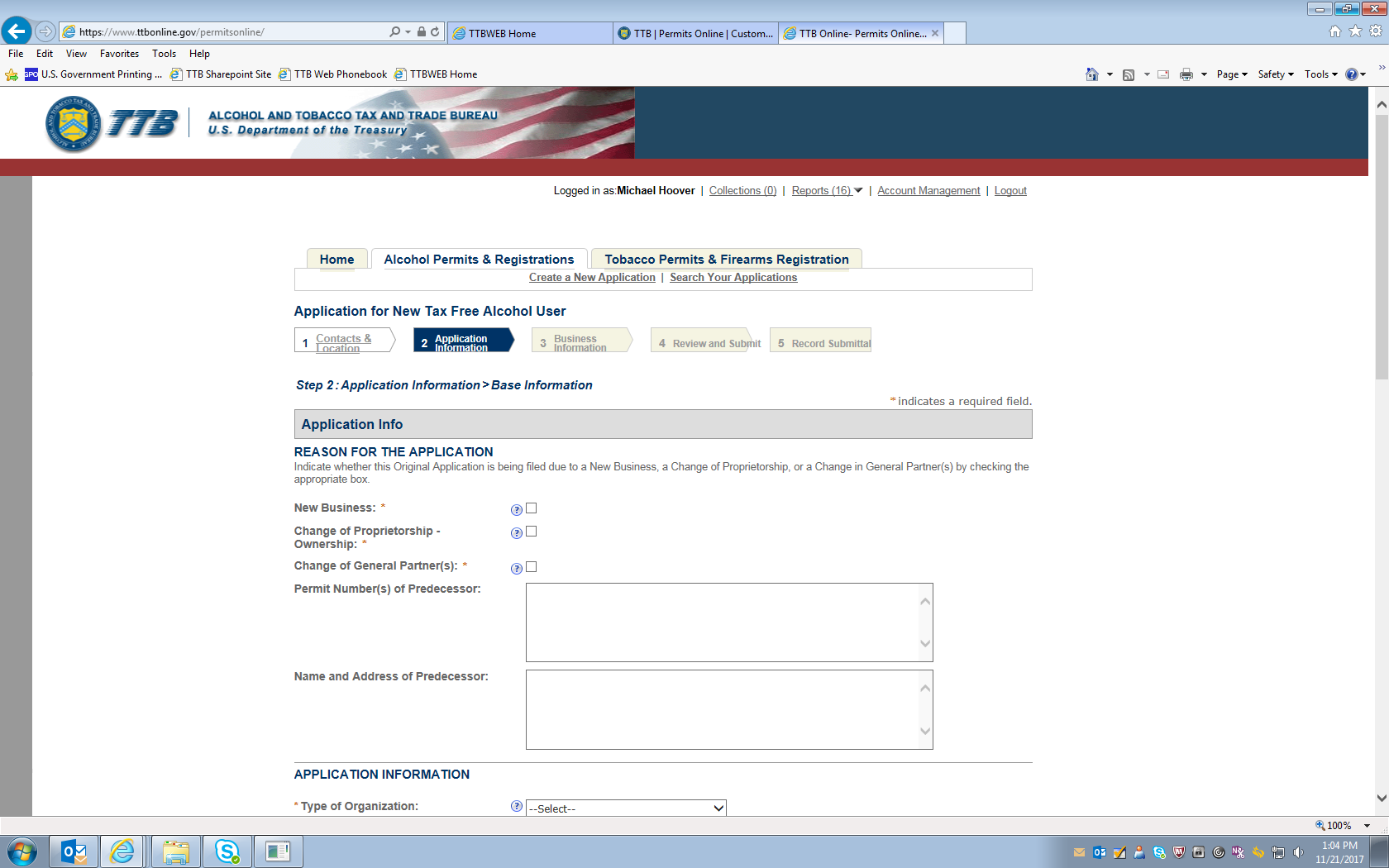 Permits Online (PONL): Application for Tax Free Alcohol Under
