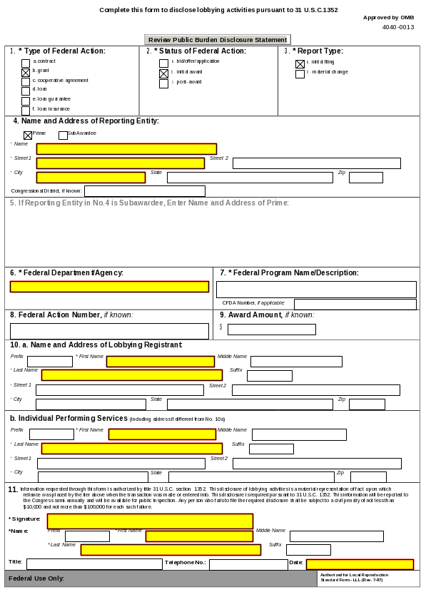Standard Form-LLL, ''Disclosure of Lobbying Activities,'' in
