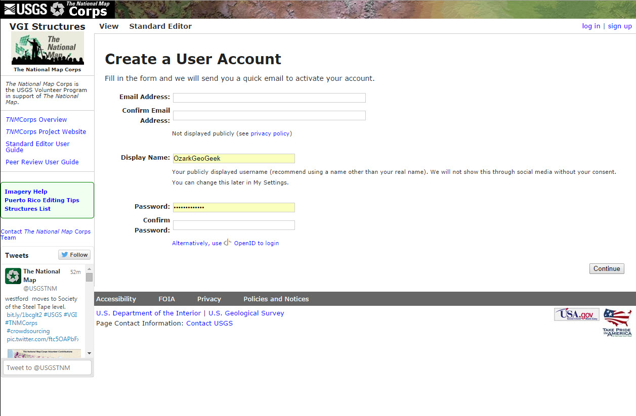 Logon Page for New User Account