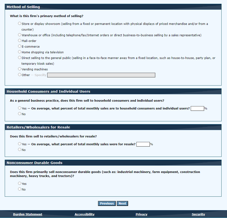 PLEASE NOTE THAT ONLY ESTABLISHMENTS THAT SELECT RETAIL TRADE, WHOLESALE, MANUFACTURING WILL BE DIRECTED TO THE ABOVE SCREEN