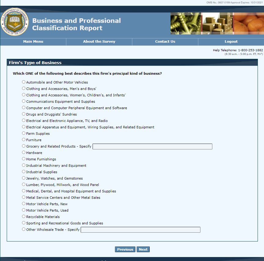 PLEASE NOTE THAT ONLY ESTABLISHMENTS THAT SELECT RETAIL TRADE, WHOLESALE, MANUFACTURING WILL BE DIRECTED TO THE ABOVE SCREEN