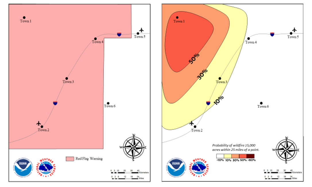 You’ve likely used a lot of probabilistic information in your work and might be very familiar with concepts like probability of participation (PoP), with percentages presented that illustrate the likelihood of rain or snowfall; Lightning Activity Level (LAL), the 1-6 scale used to indicate how much lightning you are likely to see in a thunderstorm; or probabilities of hurricane winds or surges. For the purposes of this discussion, we would like to focus on your impressions of probabilistic forecasting related to fire weather.