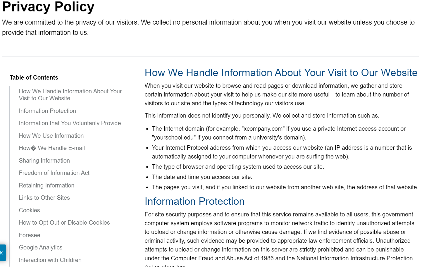 NOAA Fisheries Privacy Policy (link to https://www.fisheries.noaa.gov/privacy-policy)