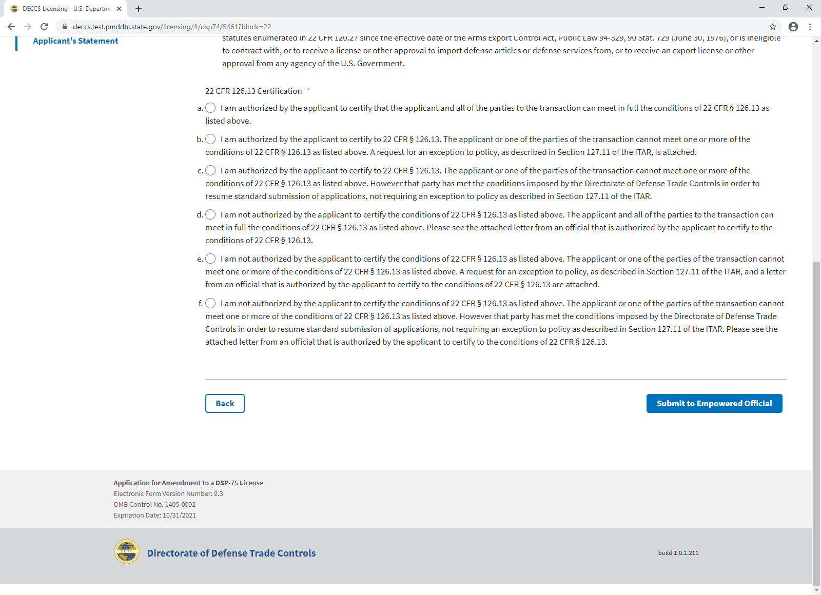 Application for Amendment to License for Export or Import of Classified or Unclassified Defense Articles and Related Technical Data