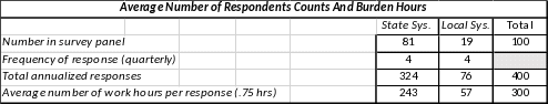 The survey universe consists of a panel of the 100 largest public retirement systems as determined by their total cash and security holdings reported in the 2012 Census of Governments. Cognitive testing conducted in November and December 2018 indicate the average number of work hours required per response is .75 hours, or 45 minutes. The estimated total quarterly burden would be 75 hours or 300 hours annually.