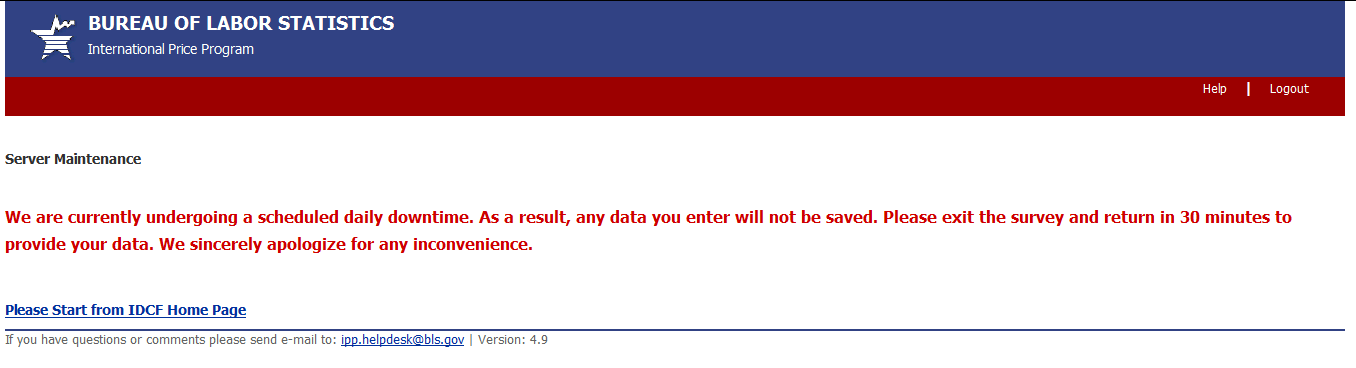 Import/Export Price Survey website