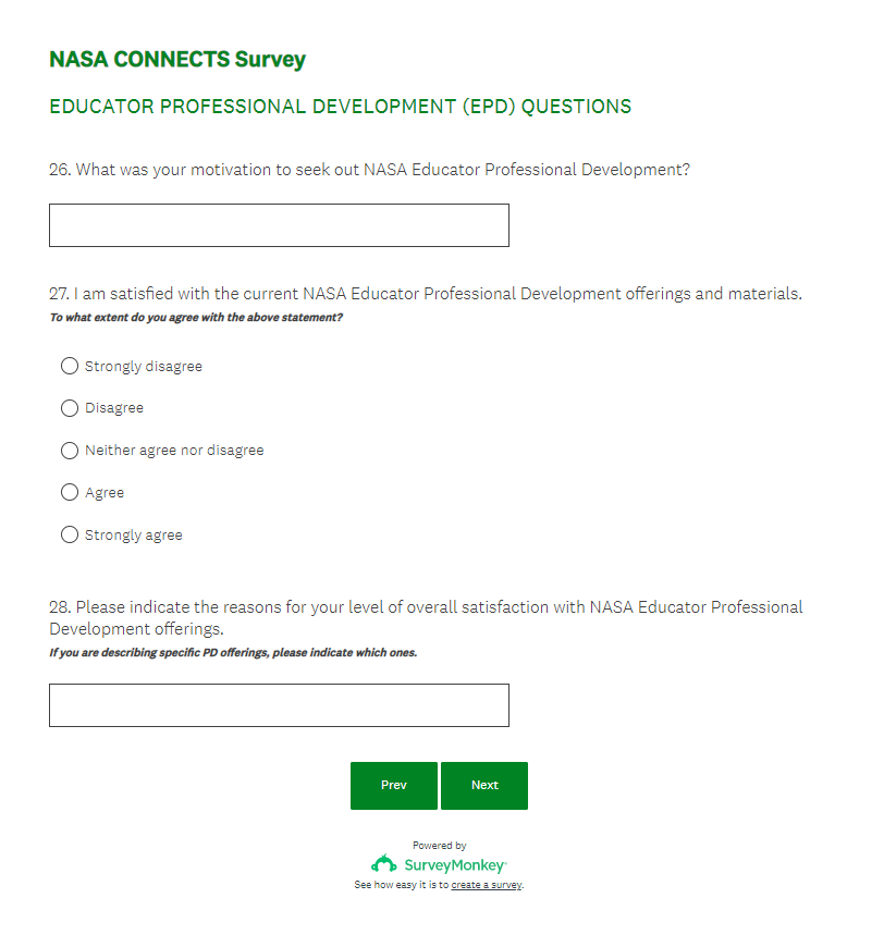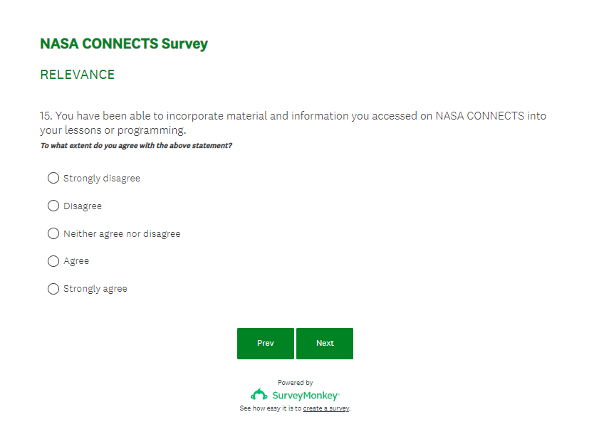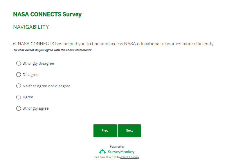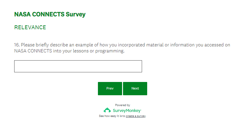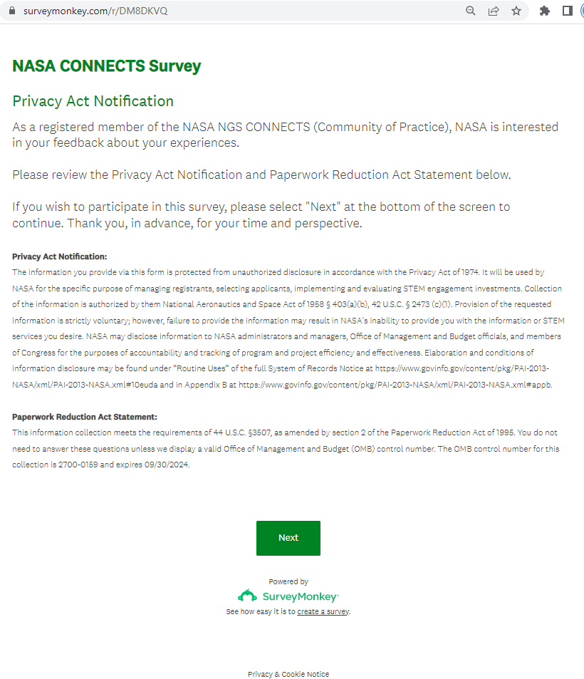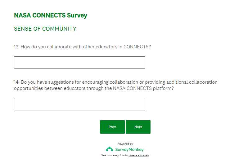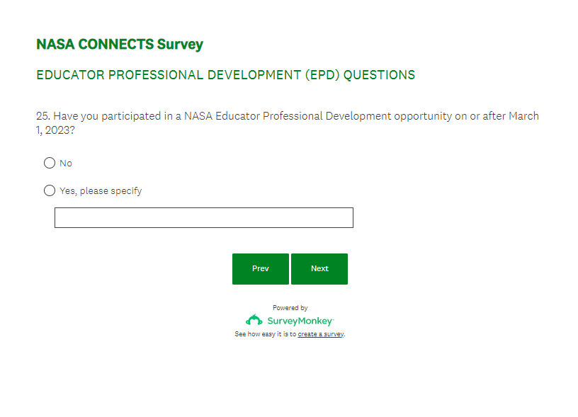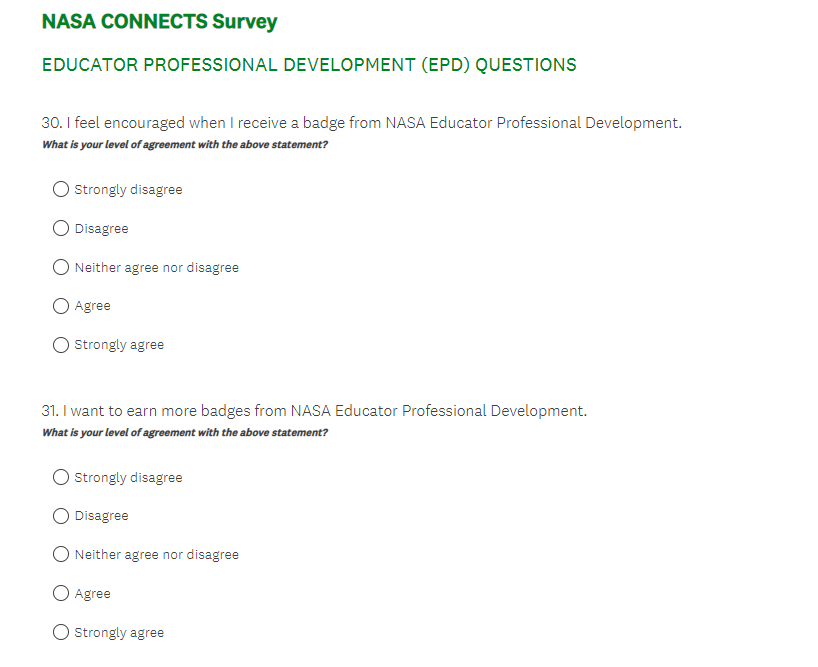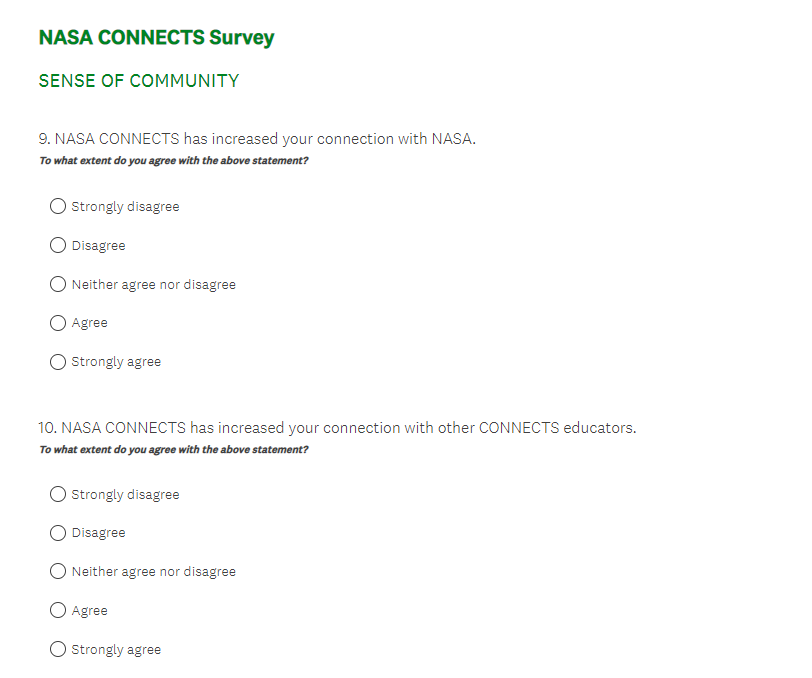 NASA CONNECTS Evaluation Survey Screenshots (4-7-23)