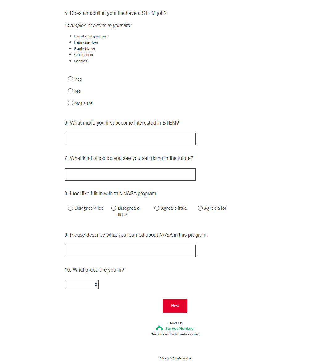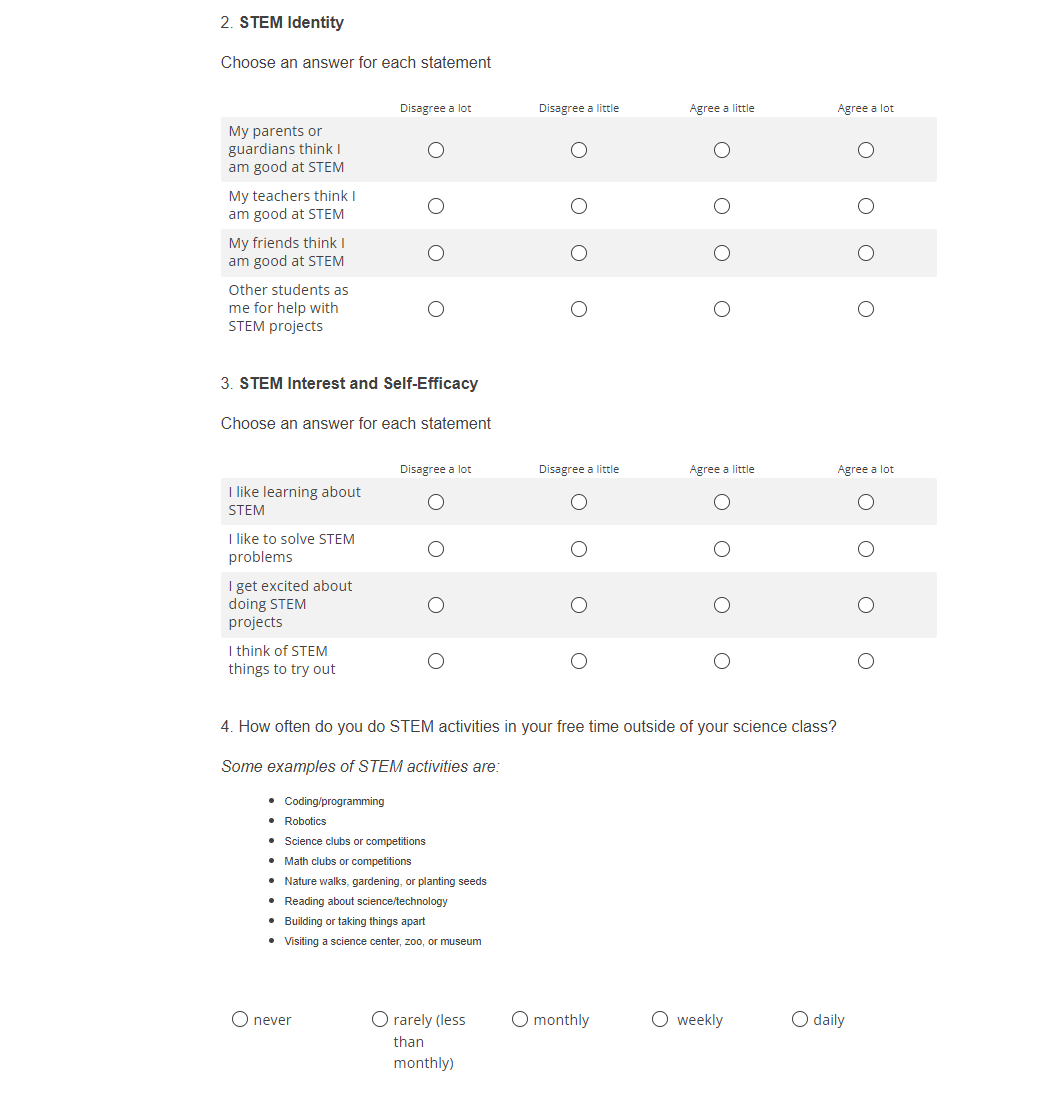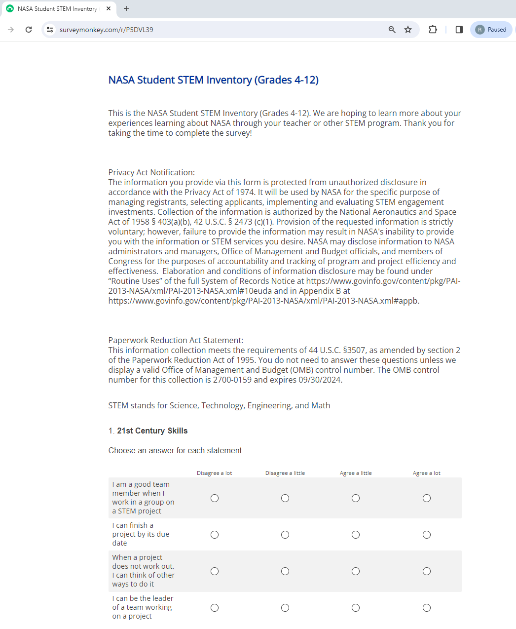 NASA Student STEM Inventory (Grades 4-12) Screenshots (2-1-24)