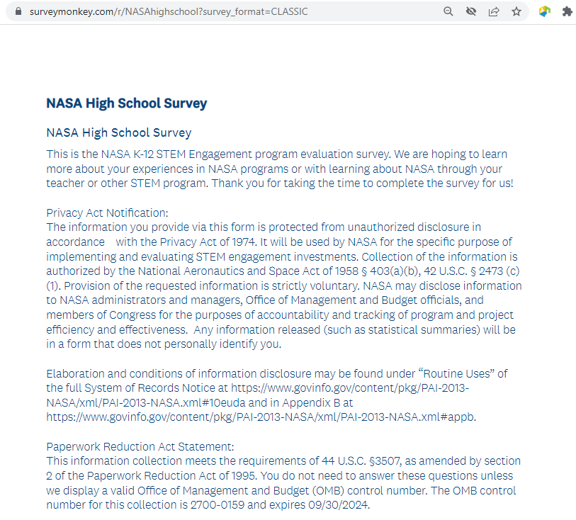 NASA High School Survey Screenshots (5-20-22)