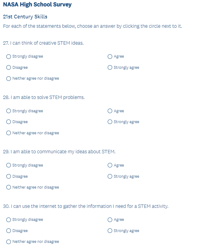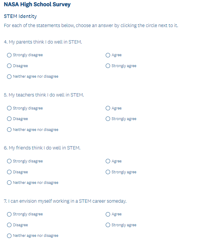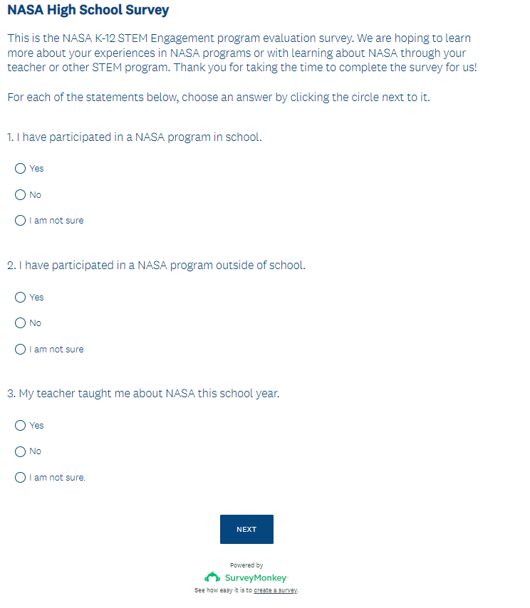 Generic Clearance for the NASA Office of STEM Engagement Performance Measurement and Evaluation (Testing)