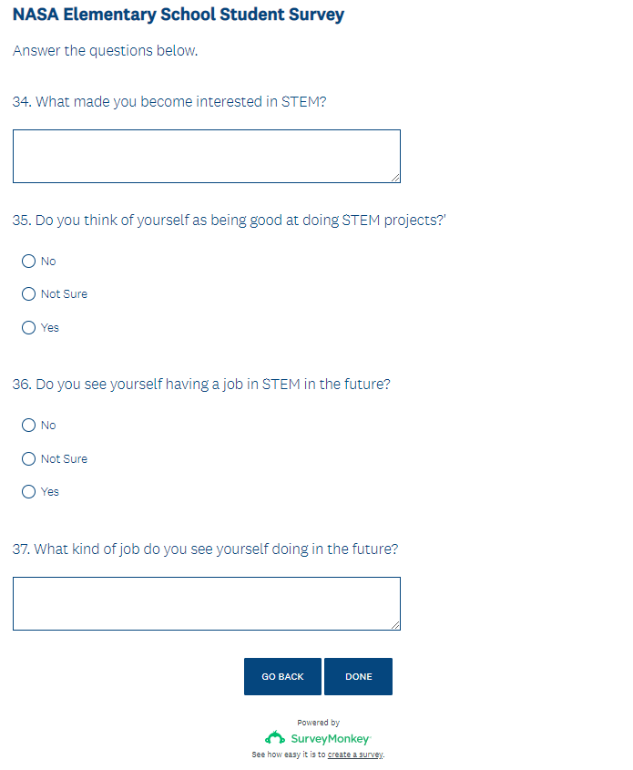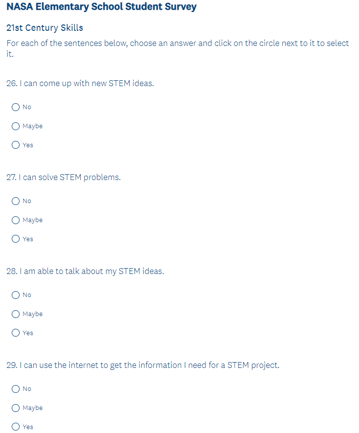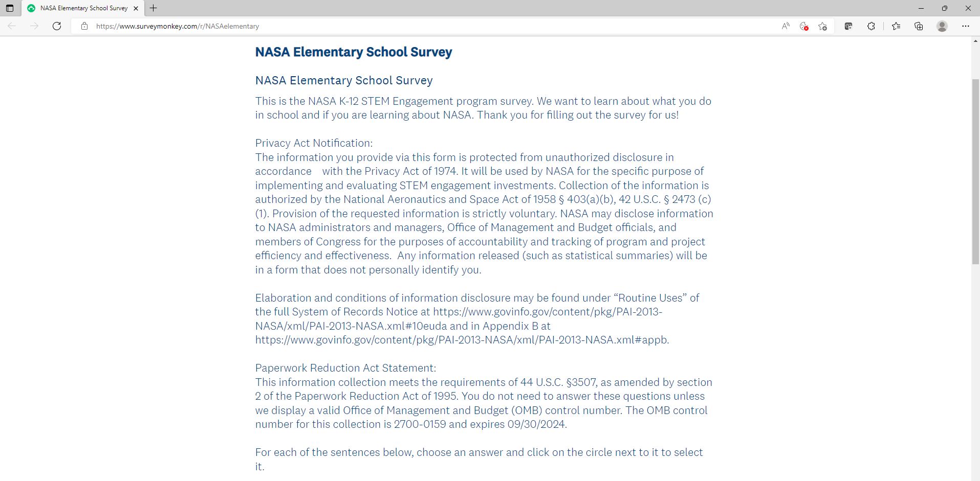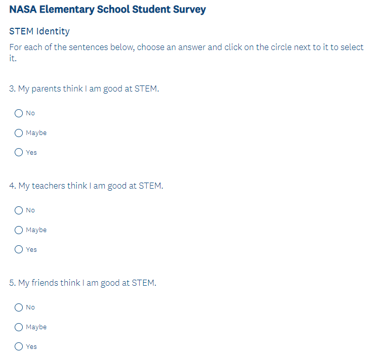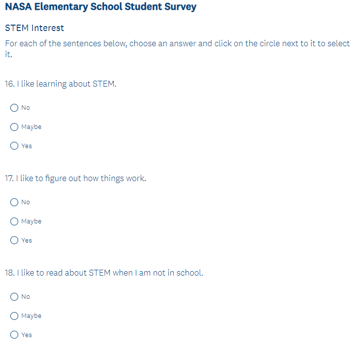 NASA K-12 Student Outcome Surveys (NASA Elementary School Survey, NASA Middle School Survey, and NASA High School Survey)