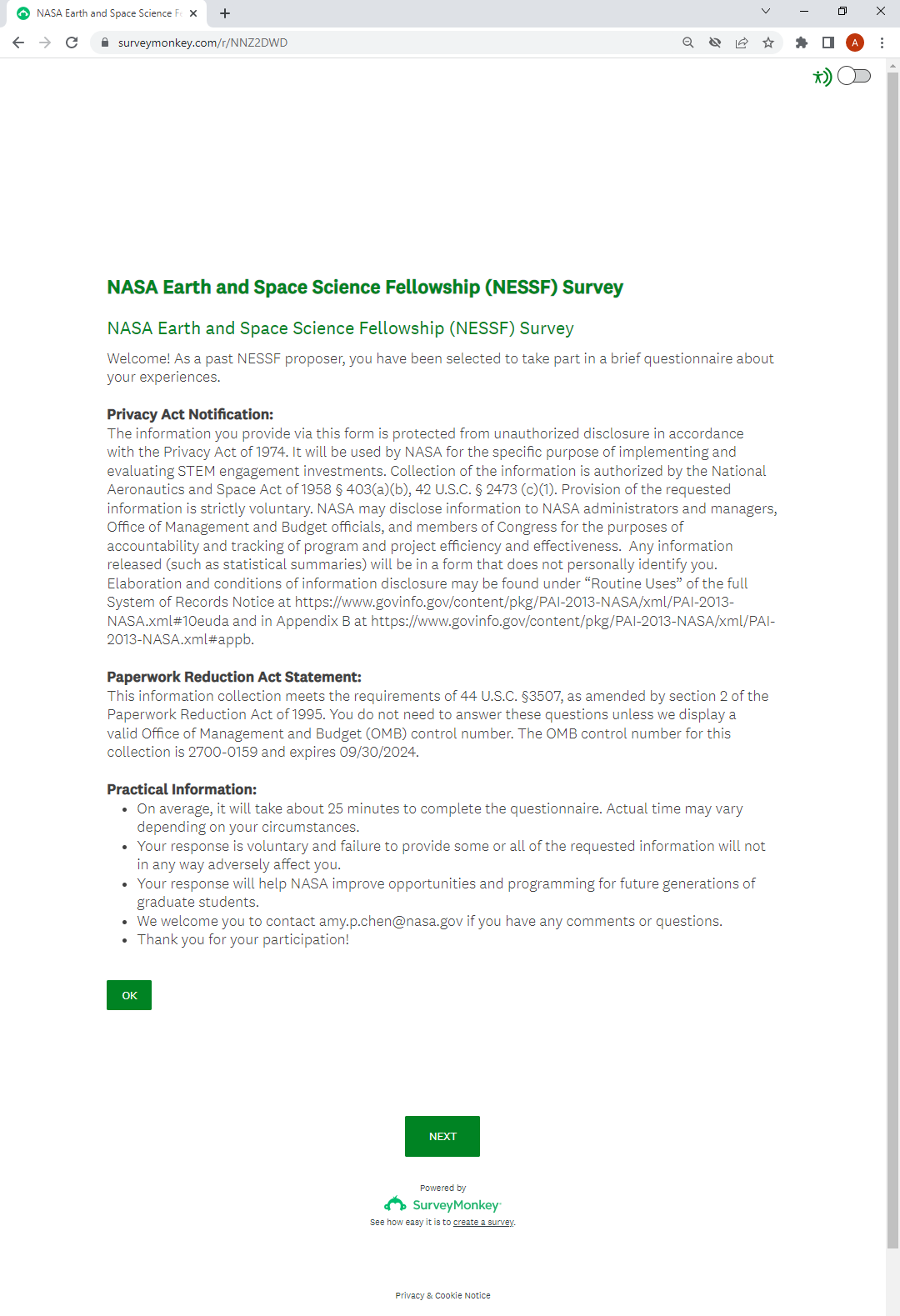 OMB: 2700-0159