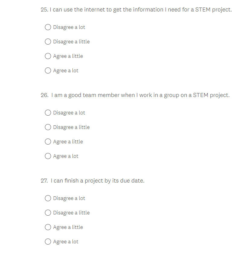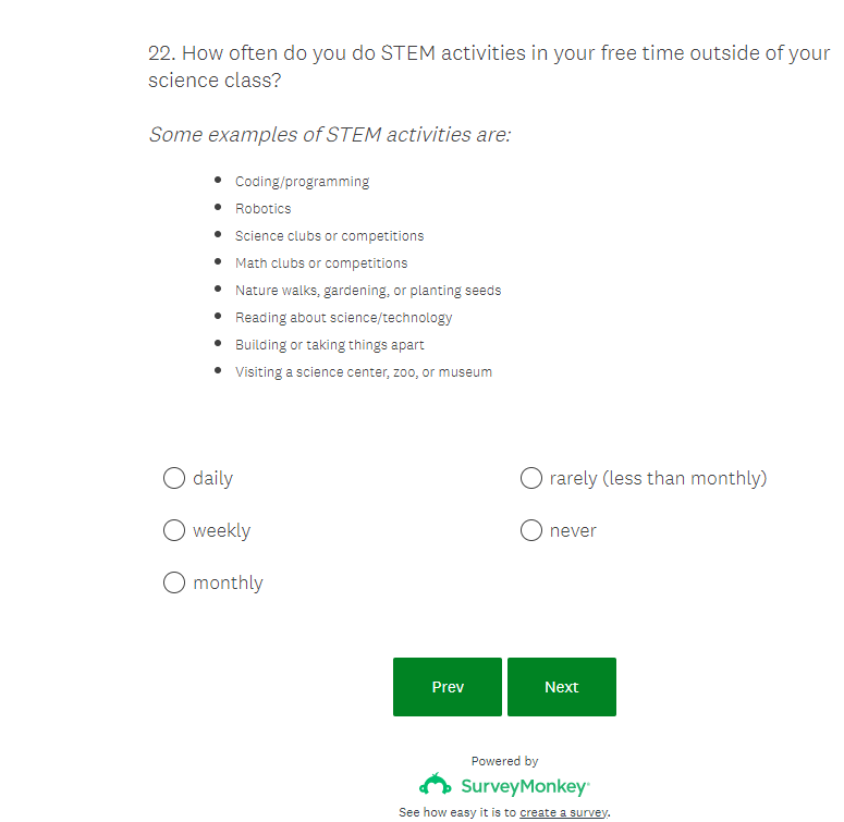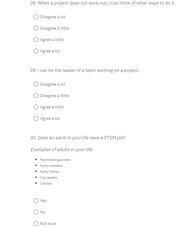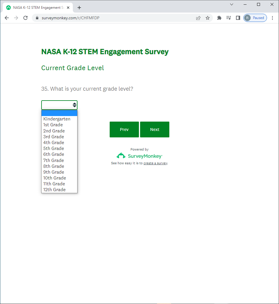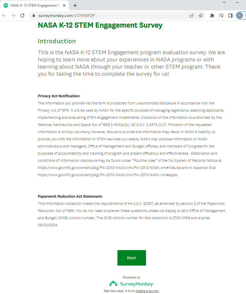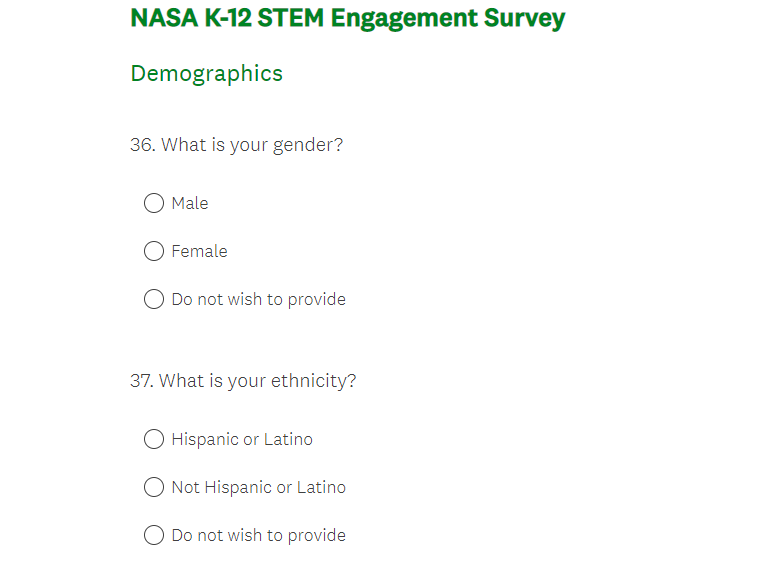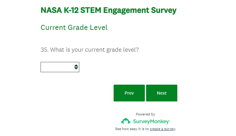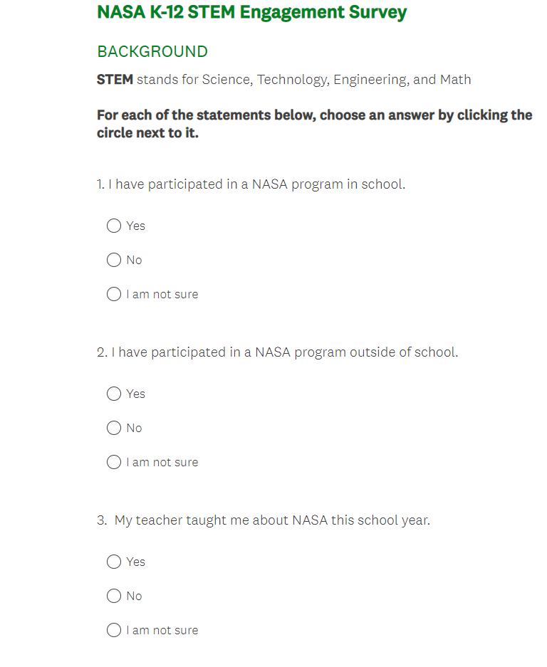 NASA K-12 Student Outcome Assessment Survey Screenshots