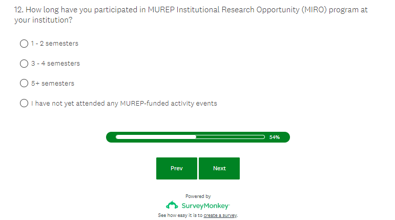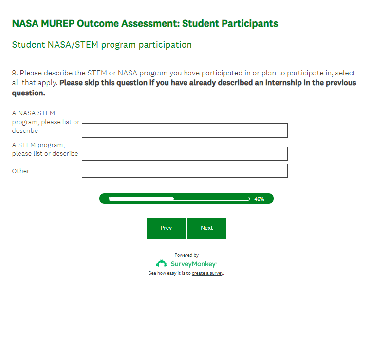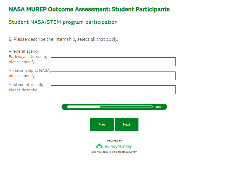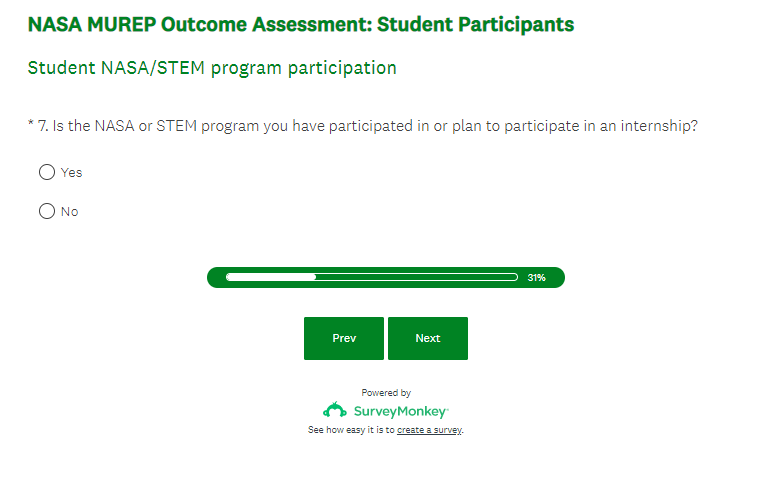 NASA MUREP Outcome Assessment - Student Survey Screenshots