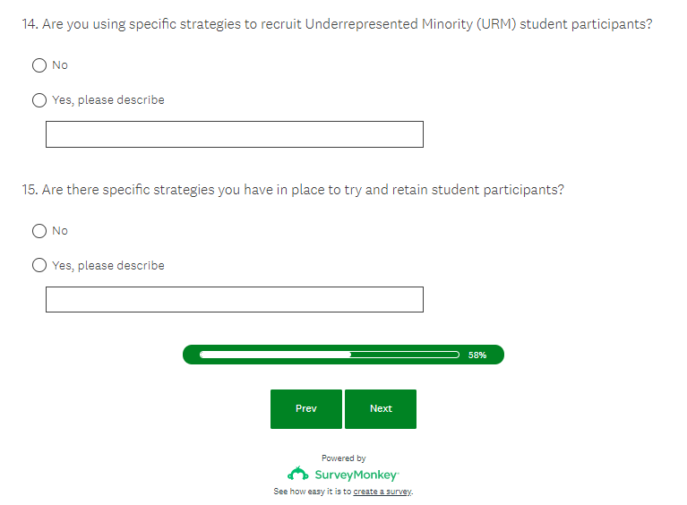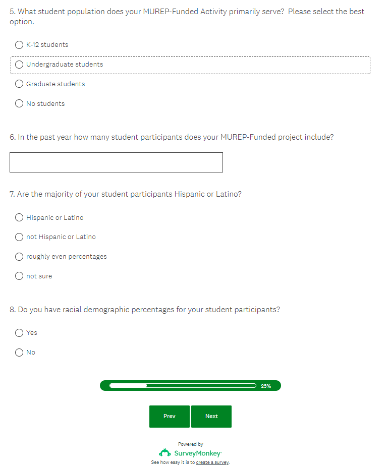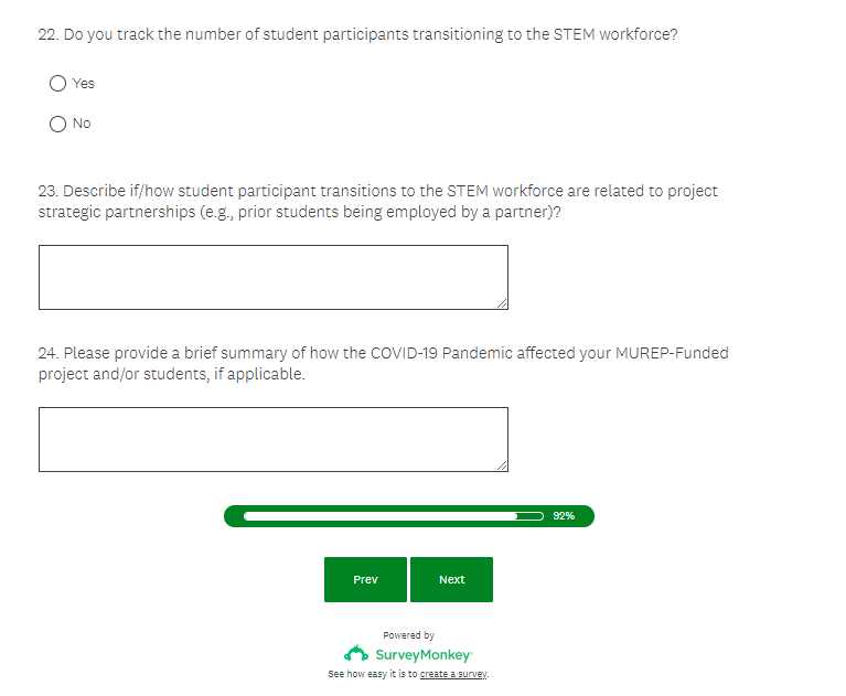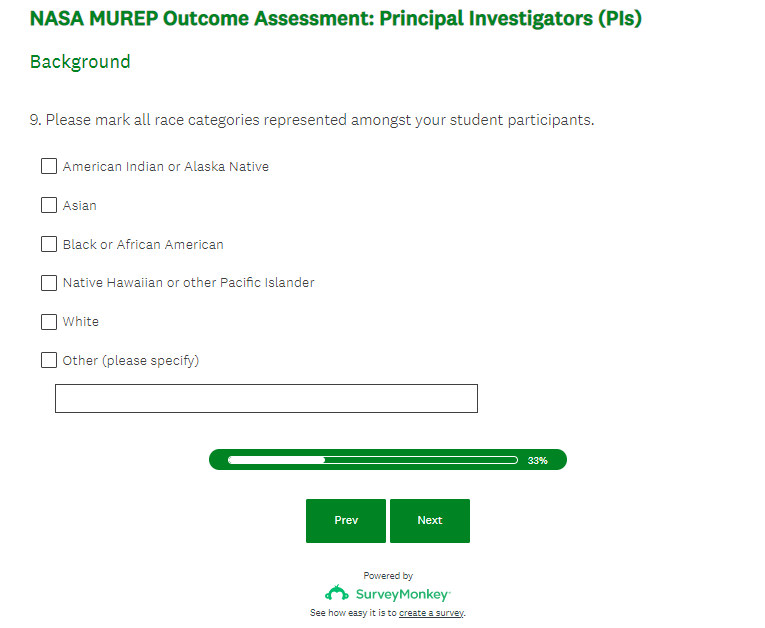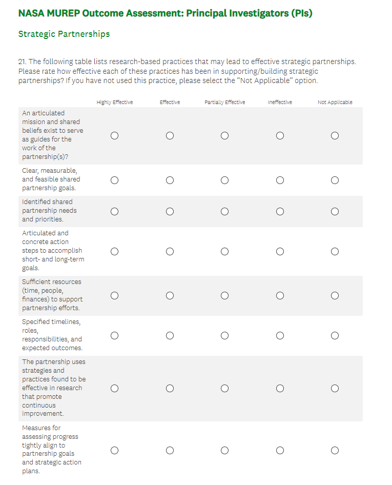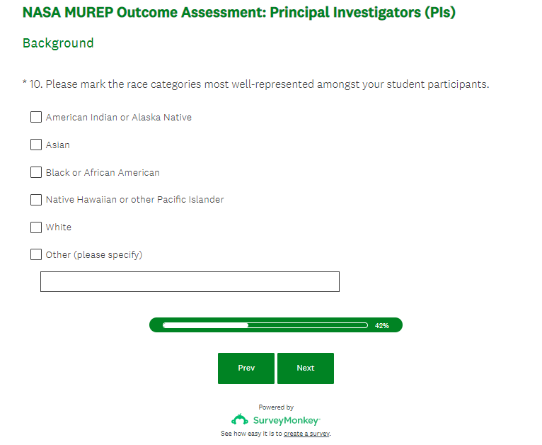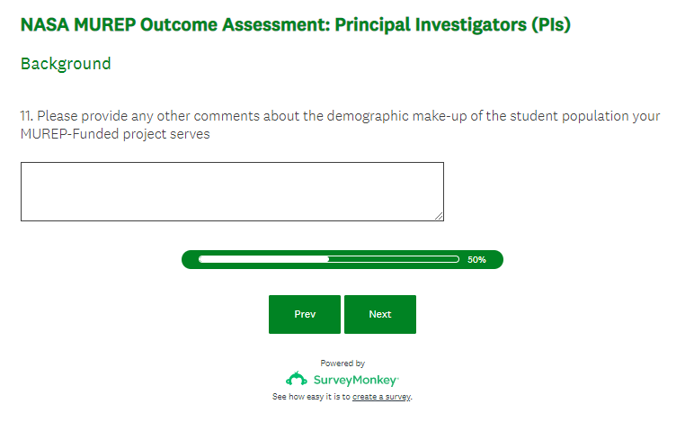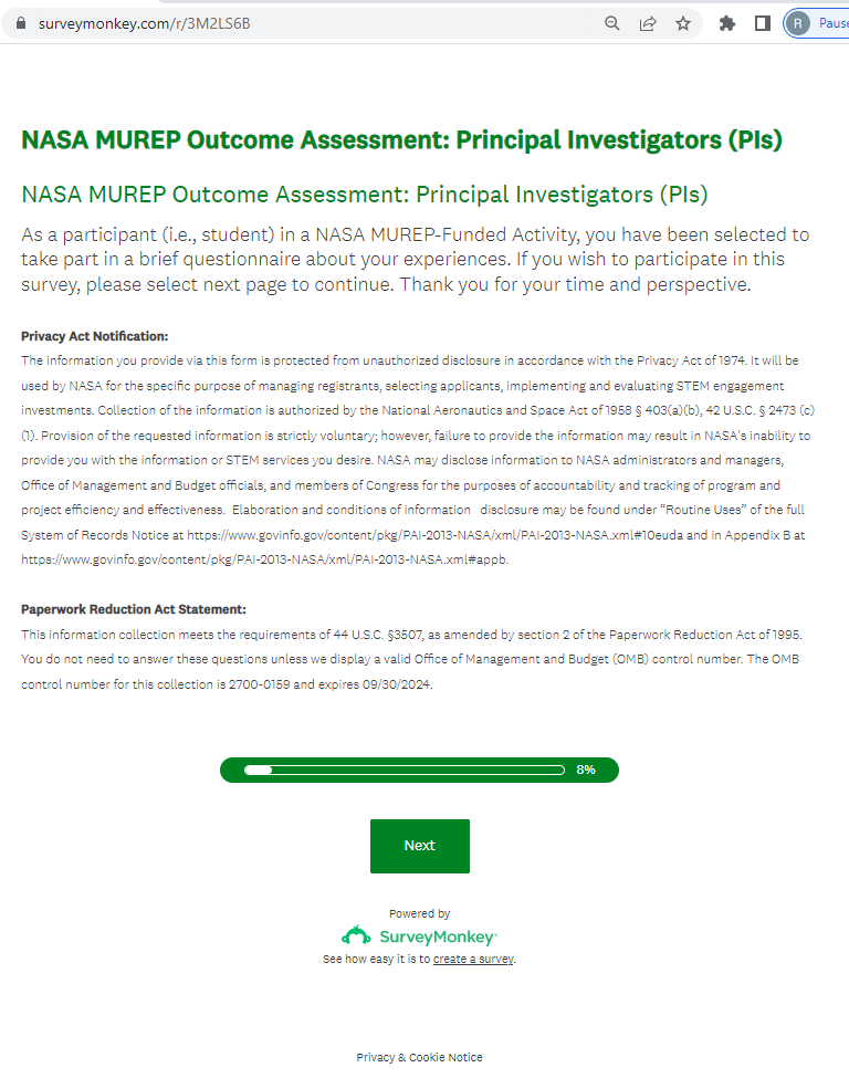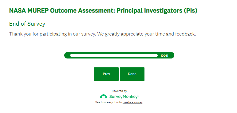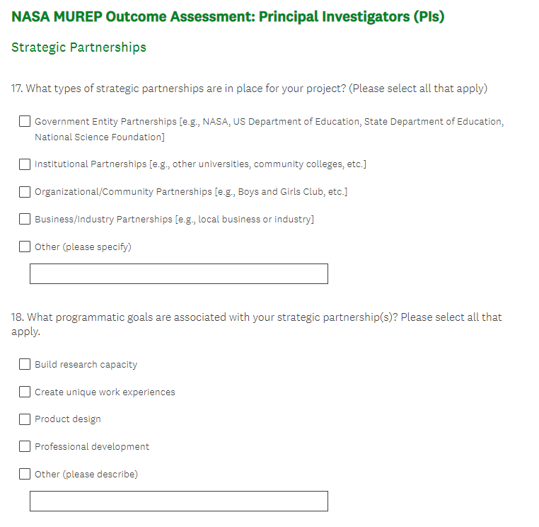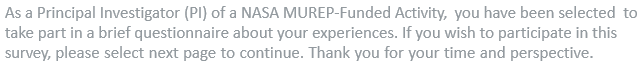 NASA MUREP Outcome Assessment - PI Survey Screenshots