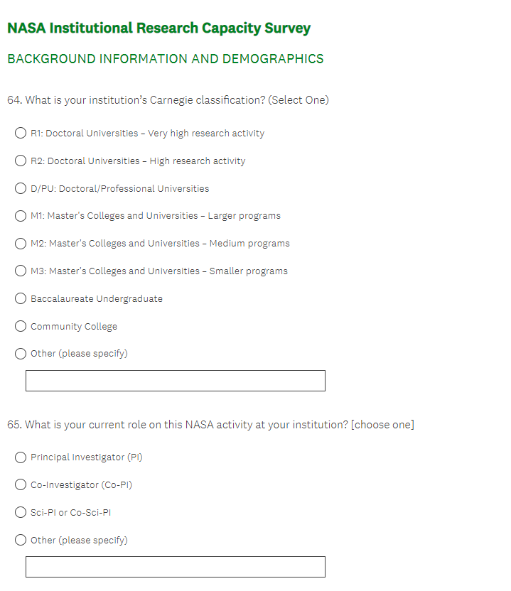NASA Institutional Research Capacity Evaluation Survey and Interview Protocol