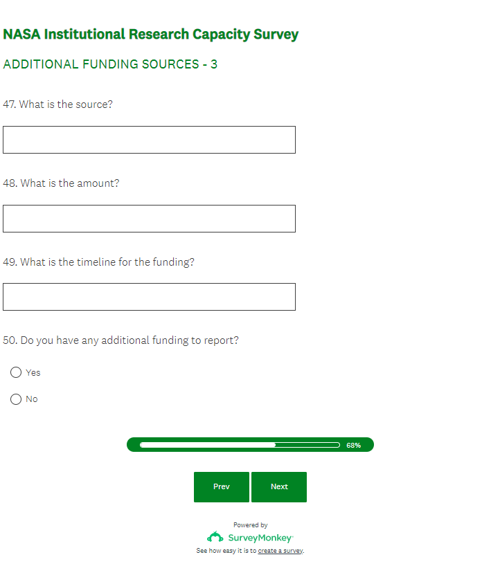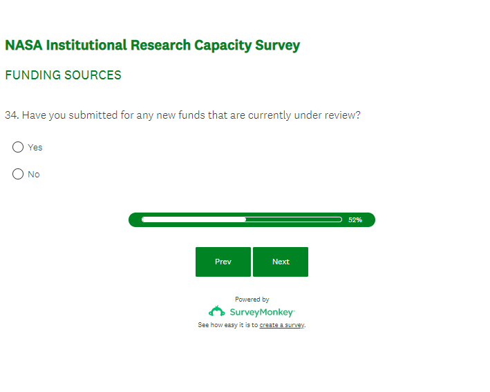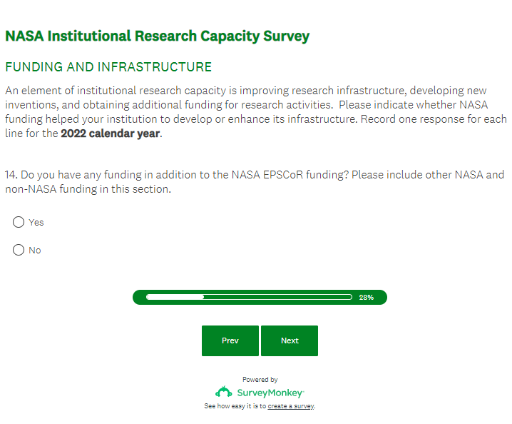 NASA EPSCoR IRC Outcome Assessment Survey Screenshots (4-17-23)