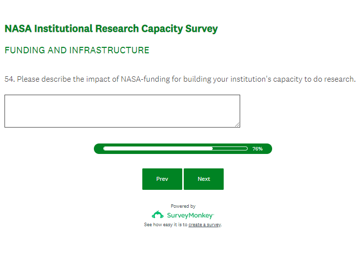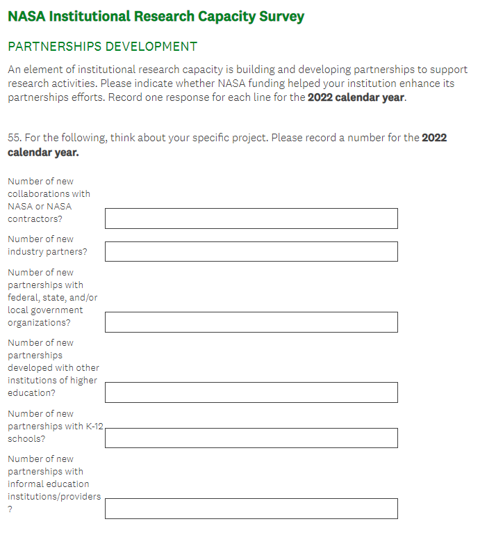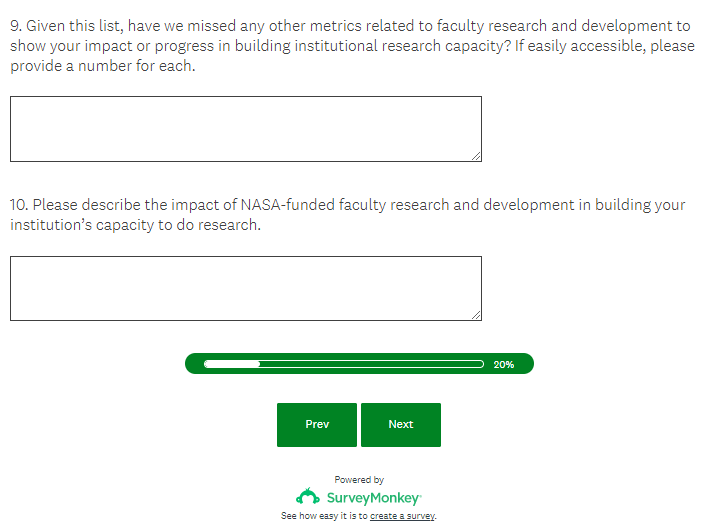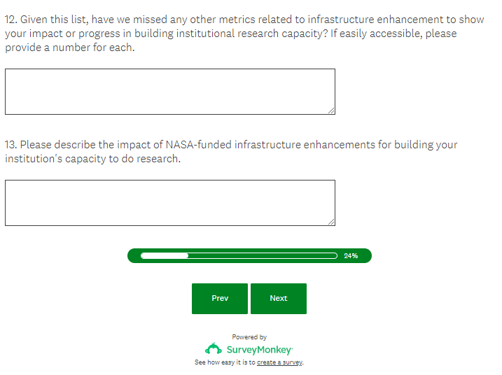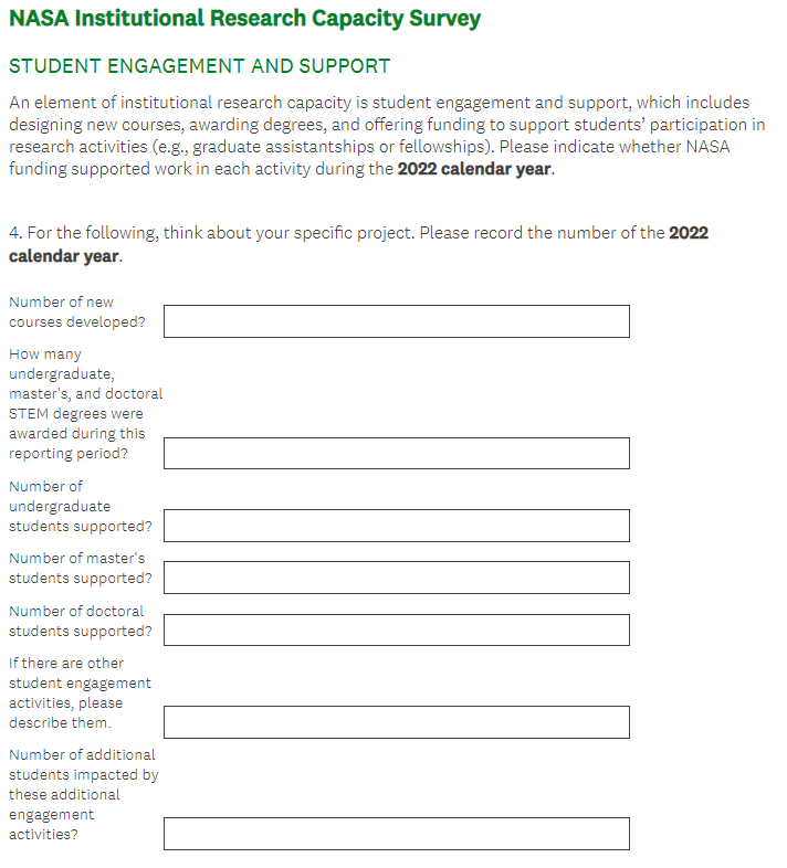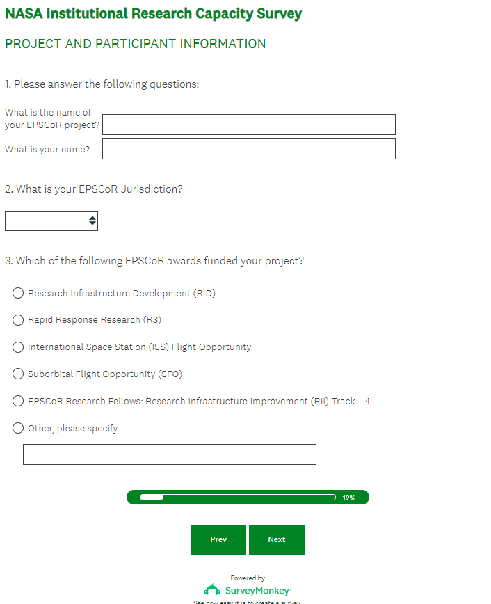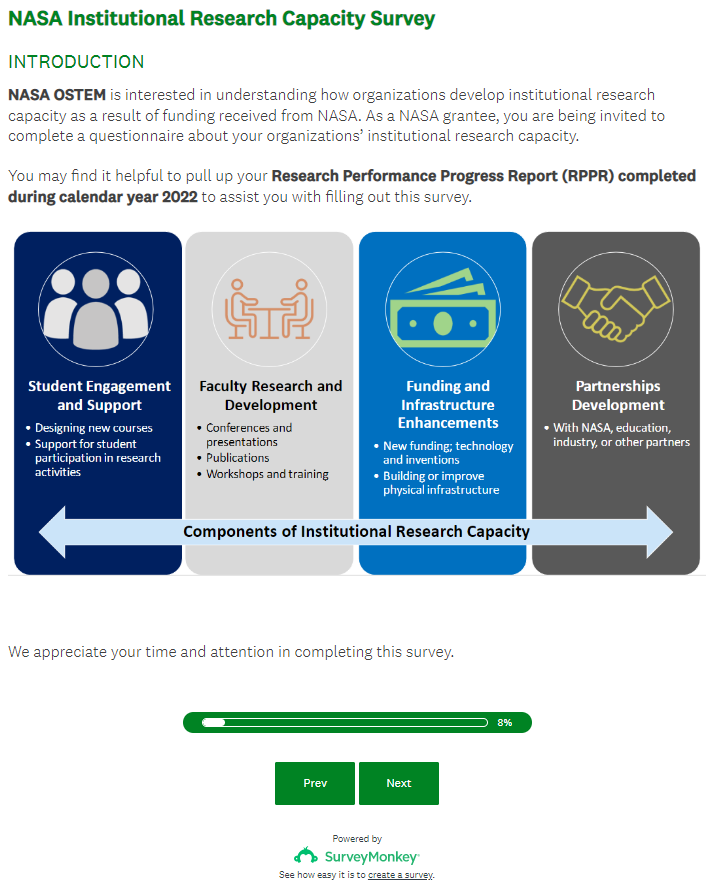 NASA EPSCoR IRC Outcome Assessment Survey Screenshots (4-17-23)