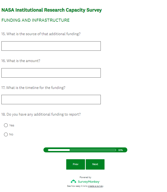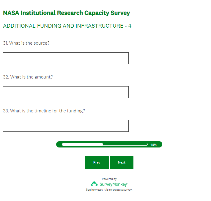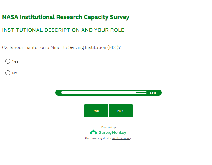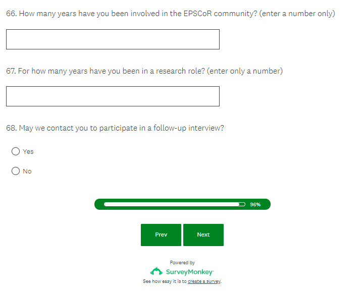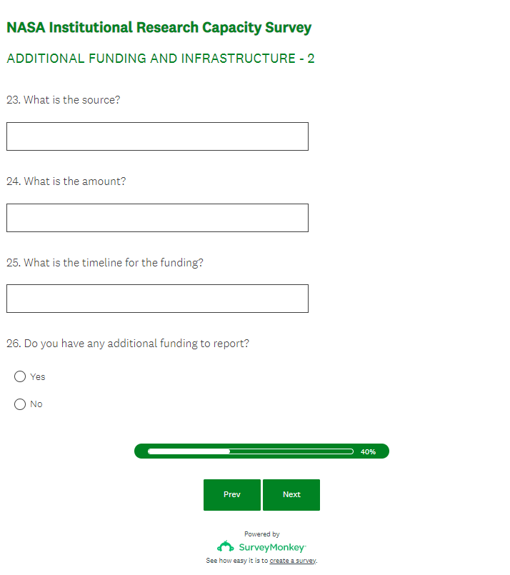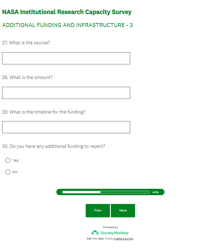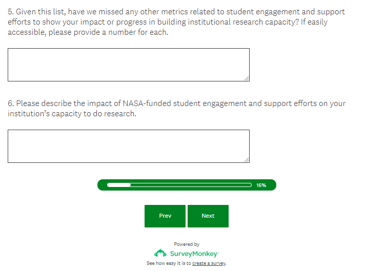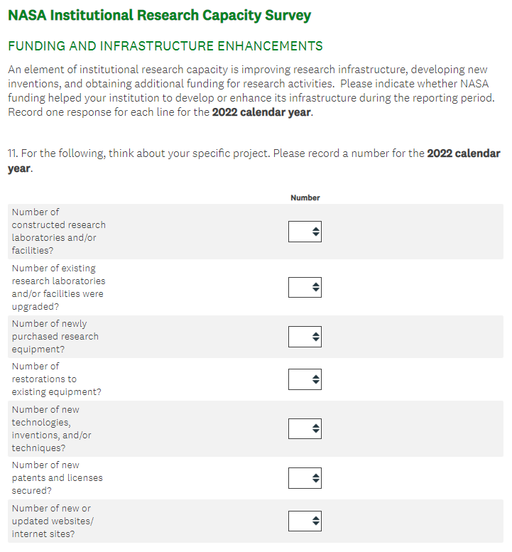 NASA EPSCoR IRC Outcome Assessment Survey Screenshots (4-17-23)