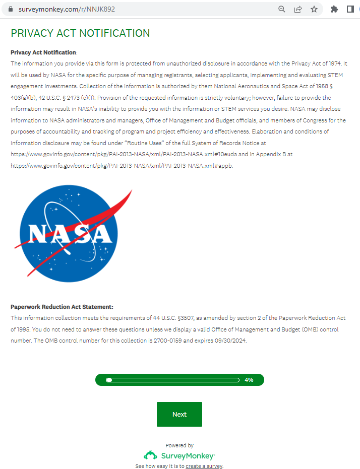Generic Clearance for the NASA Office of STEM Engagement Performance Measurement and Evaluation (Testing)