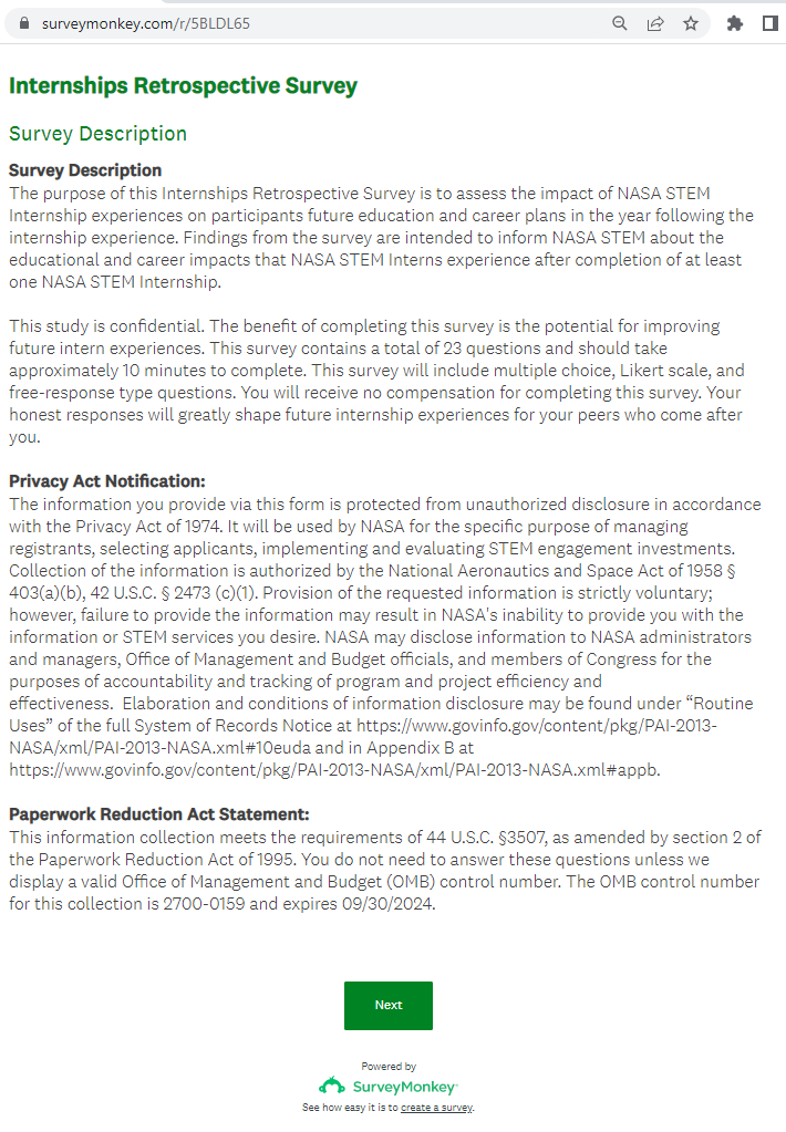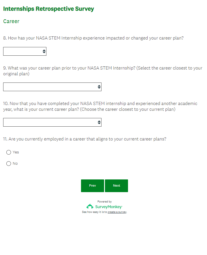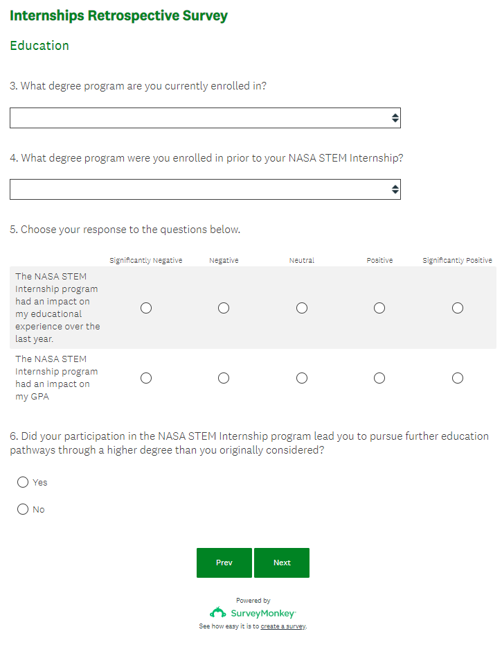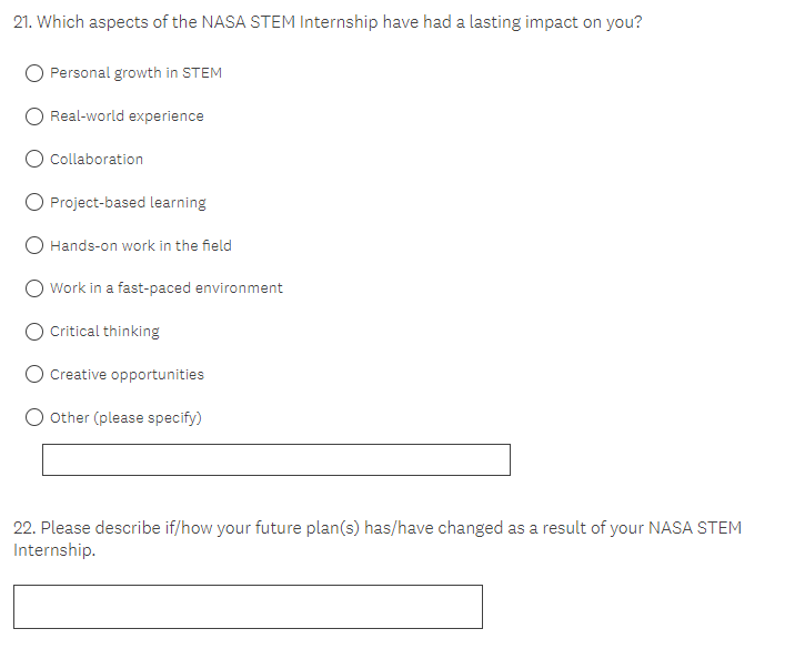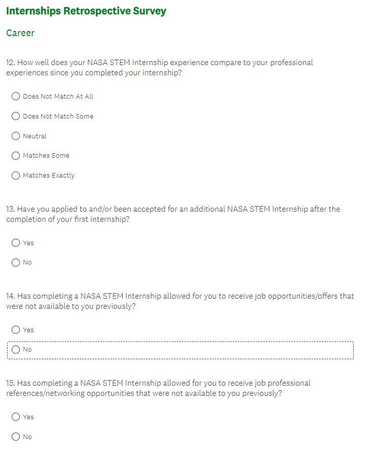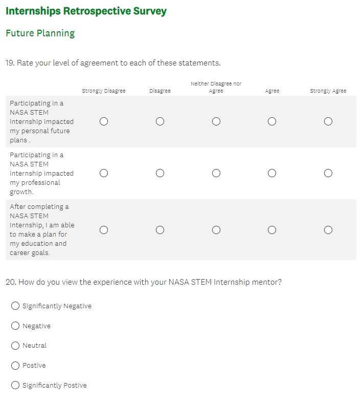 NASA Internships Retrospective Survey Screenshots (4-20-23)