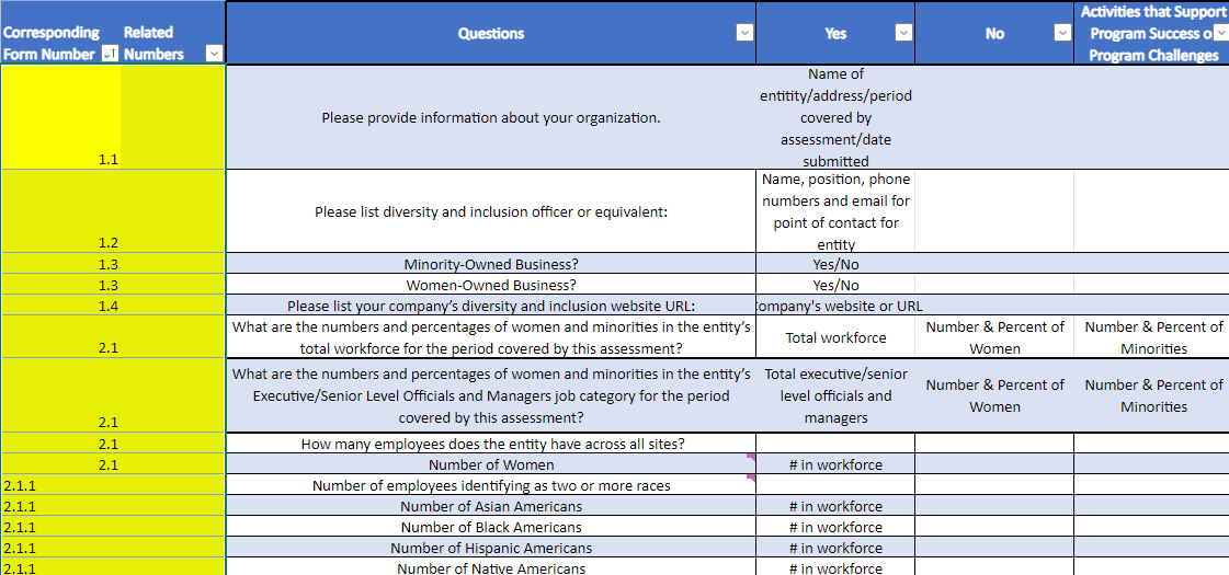 See corresponding form numbers (in yellow) comparison to the Excel spreadsheet question fields: