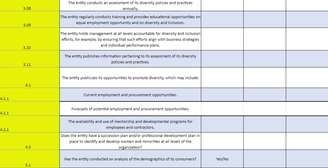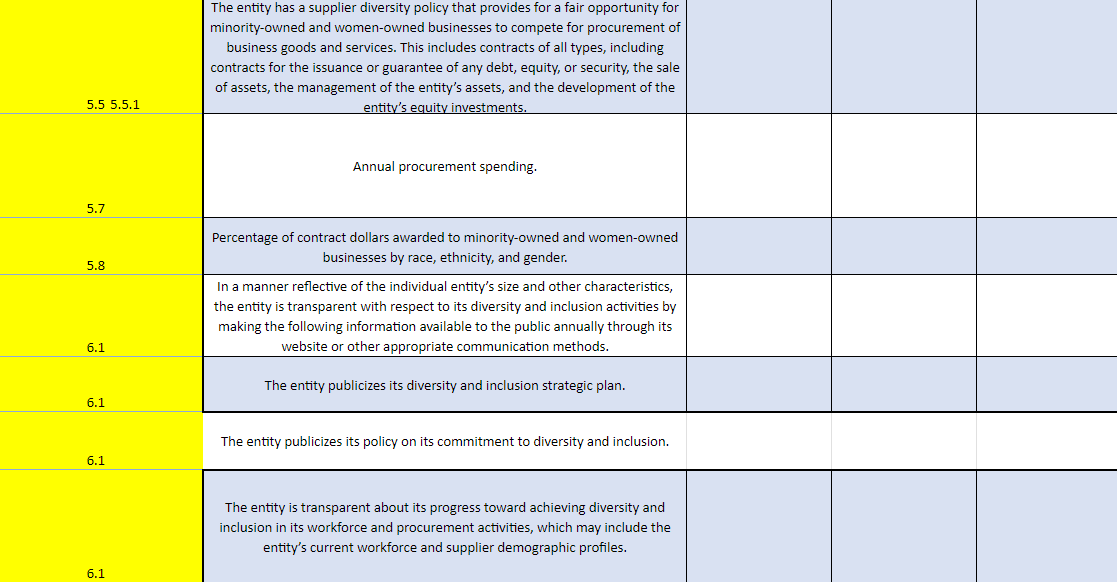 Joint Standards and CFPB Standards for Assessing the Diversity Policies and Practices