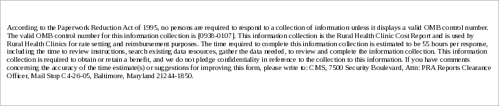| PART I - RURAL HEALTH CLINIC IDENTIFICATION DATA |