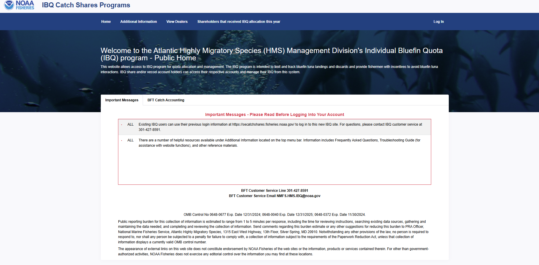 IBQ Catch Share Homepage and PRA Statement, October 2024