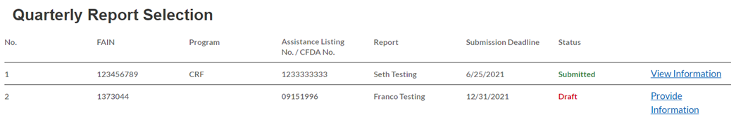 In this module, you will select the Quarterly Report that you are required to complete