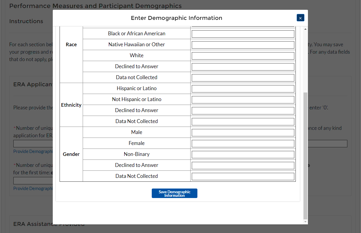 Additional information is located in the Reporting Guidance posted on the ERA website, as well in the ERA Frequently Asked Questions (FAQs) and fact sheets, which provide important information regarding ERA.