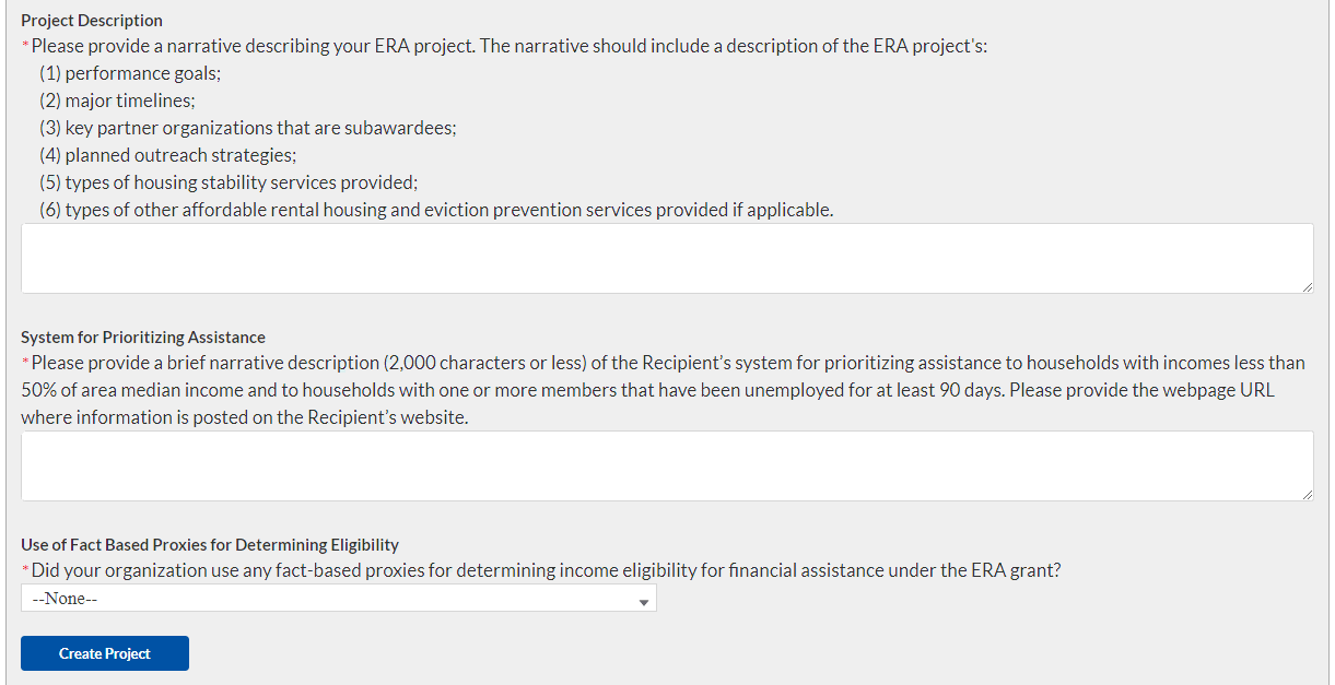 Manually enter the ERA Project Website URL and indicate the Geographic Service Areas served by the project.