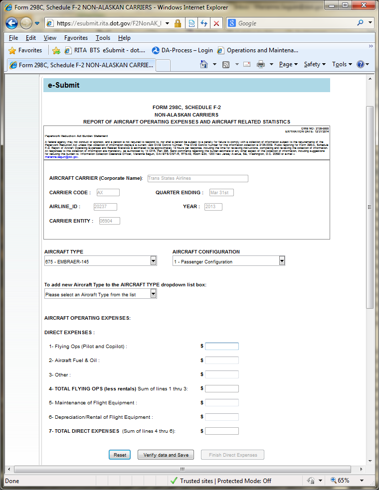 reporting for Form 298-C, Schedule F-2, Report of Aircraft Operating