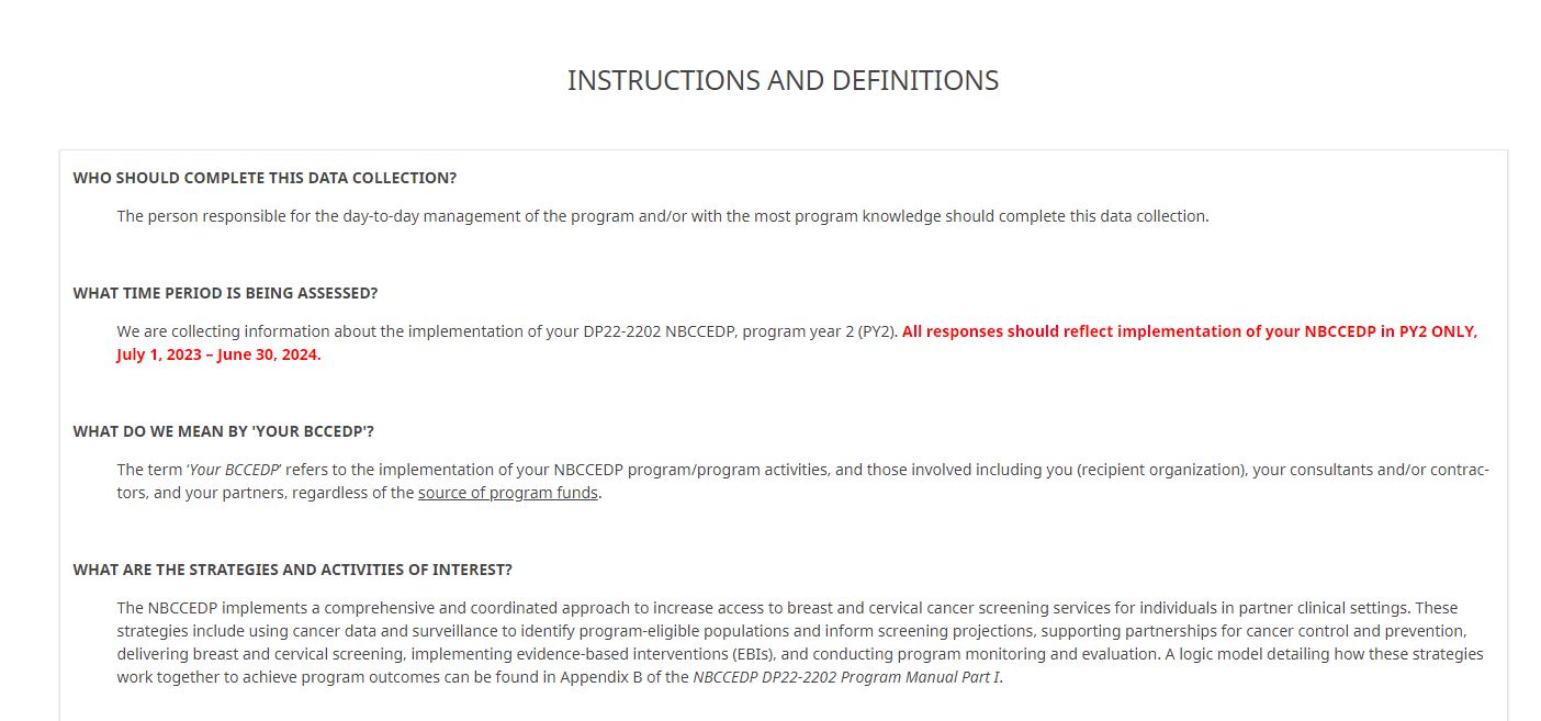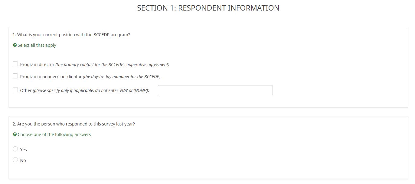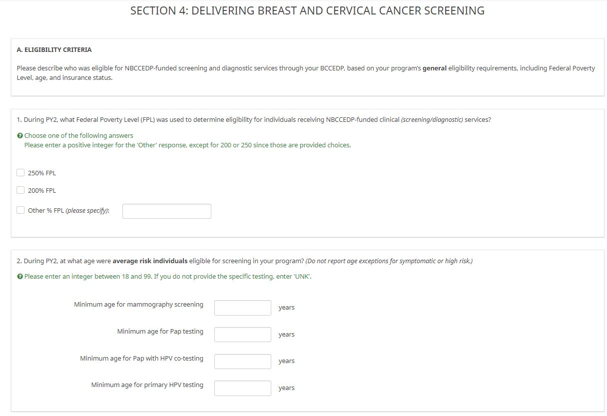 ATTACHMENT XX: NBCCEDP ANNUAL GRANTEE SURVEY (Screenshots)