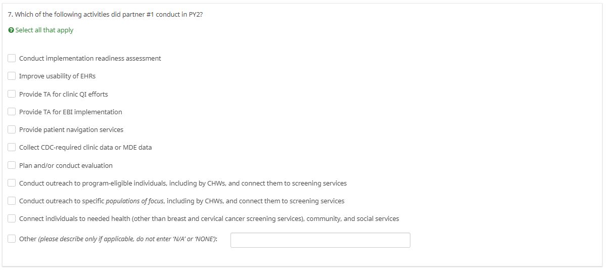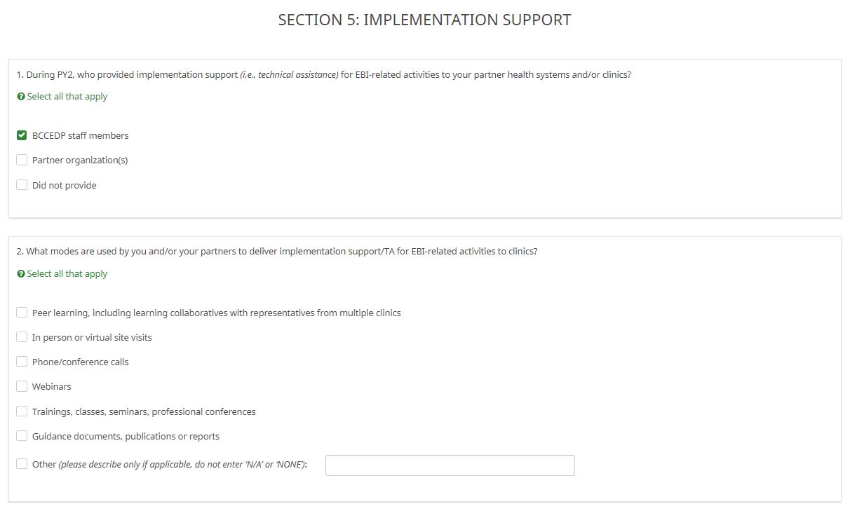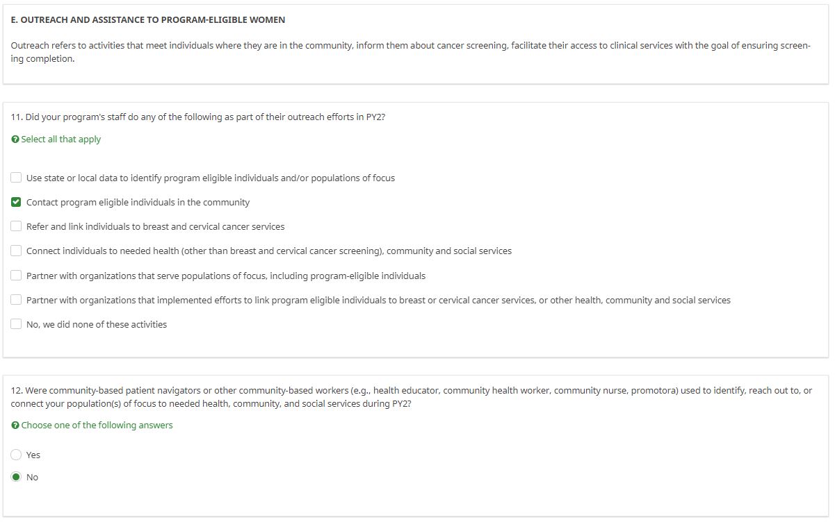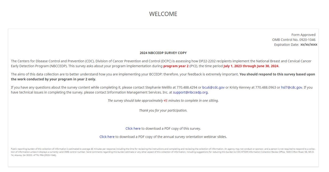 ATTACHMENT XX: NBCCEDP ANNUAL GRANTEE SURVEY (Screenshots)