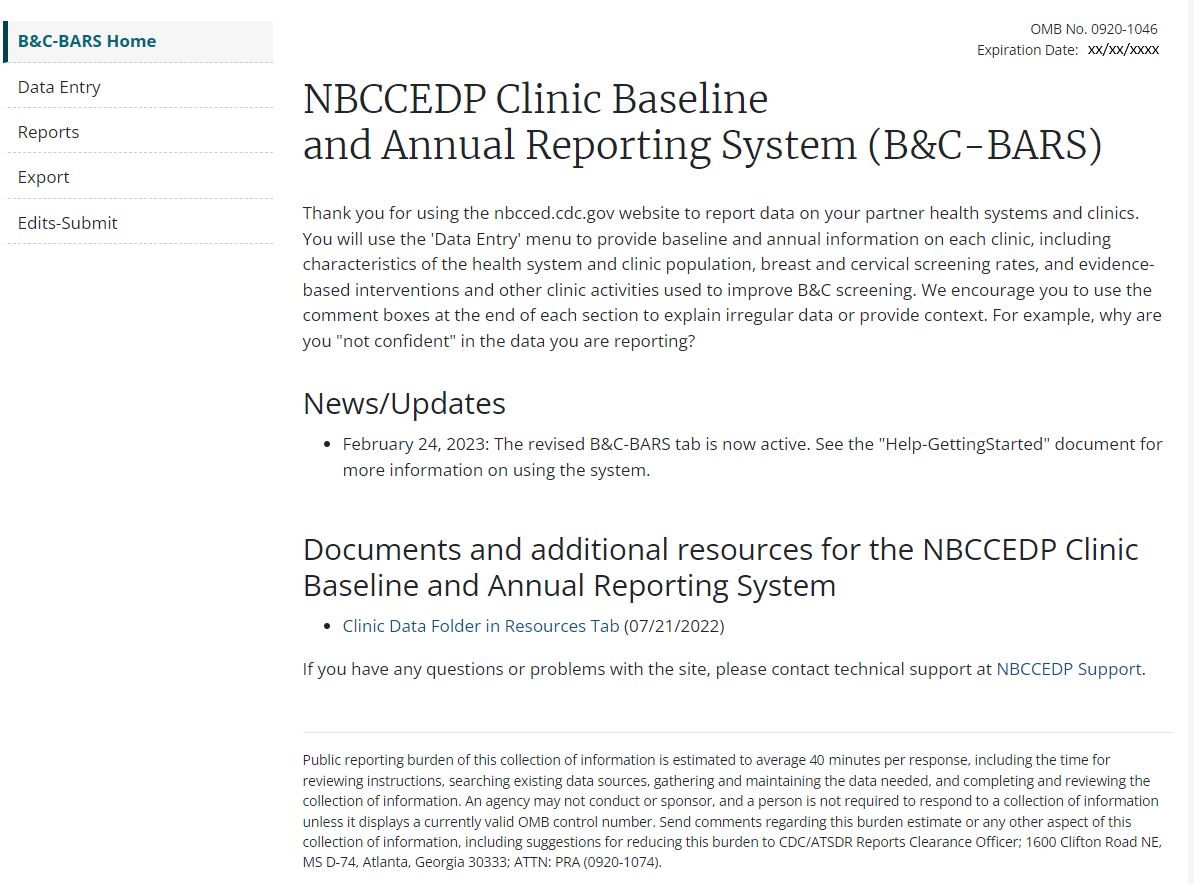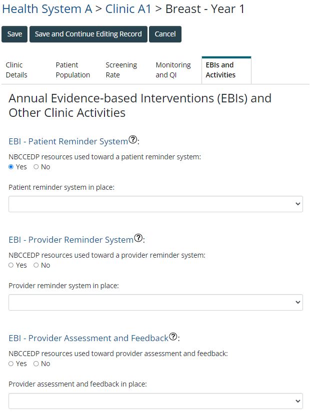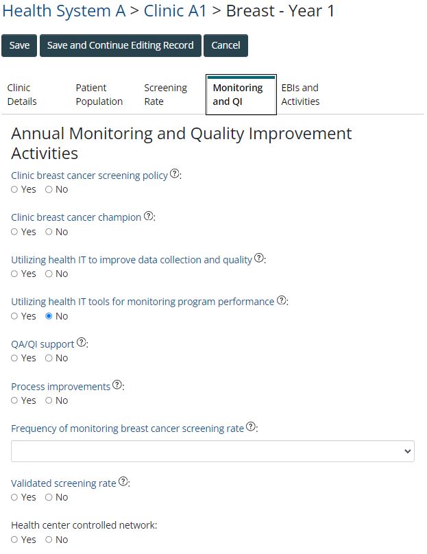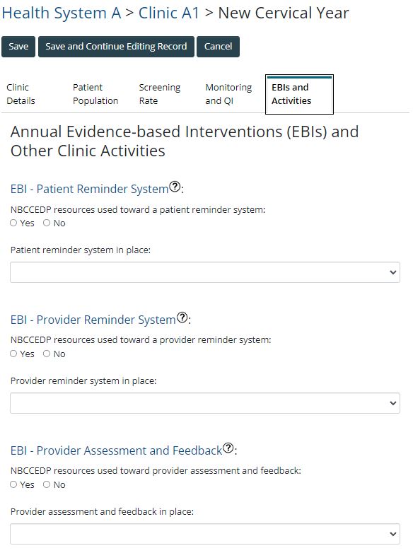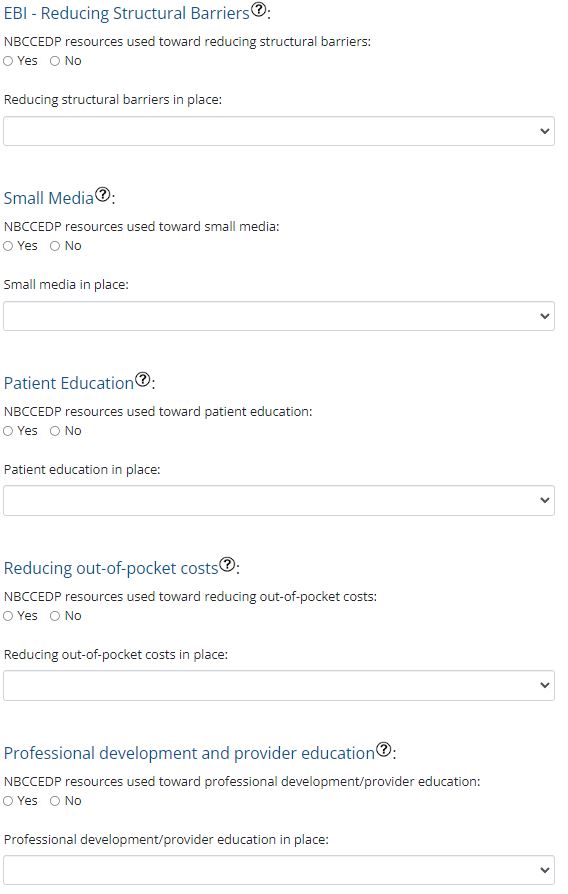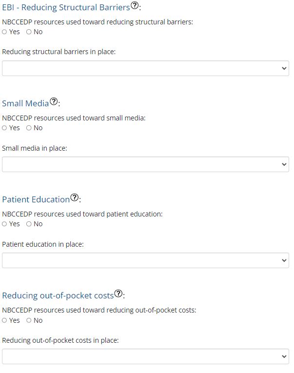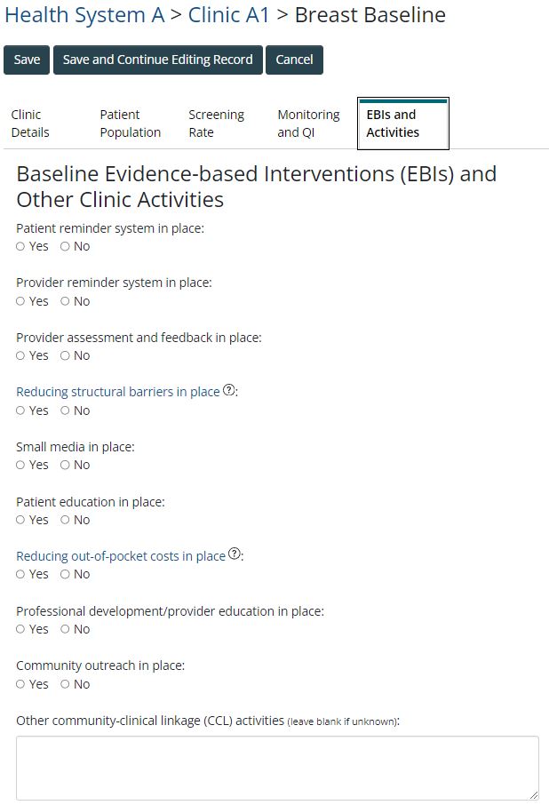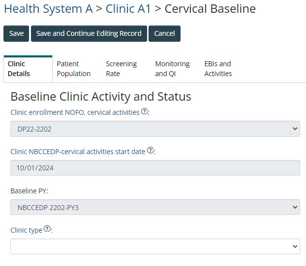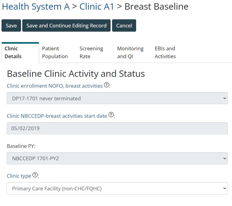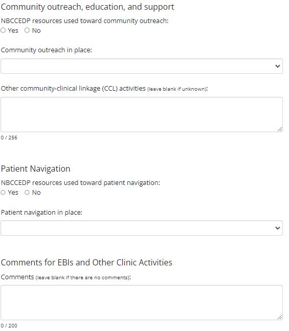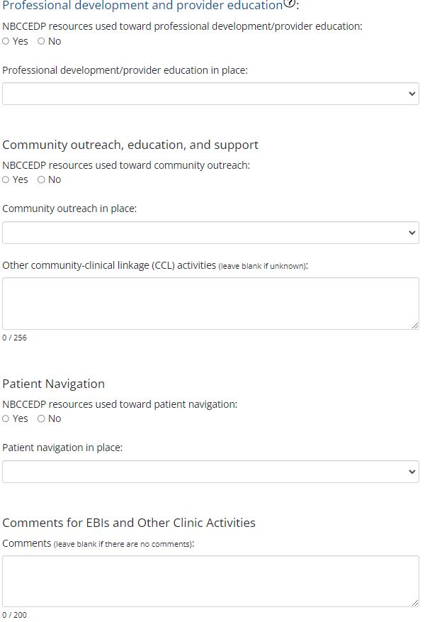 NBCCEDP Clinic-Level Data Instrument (Screenshots)