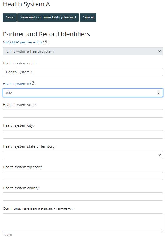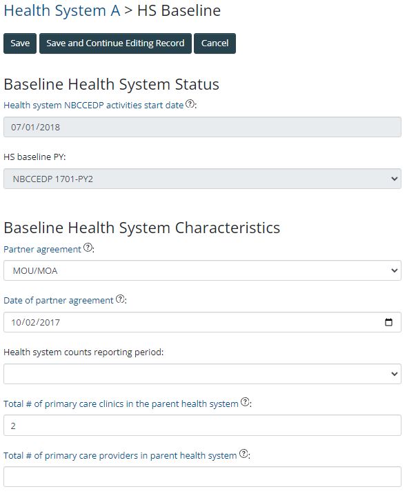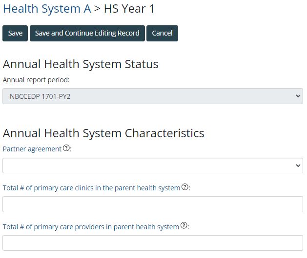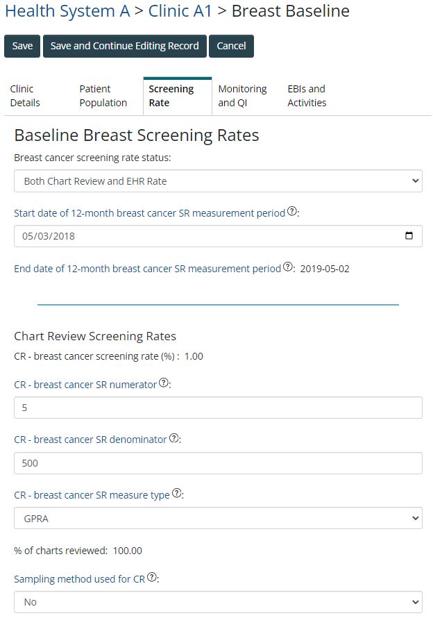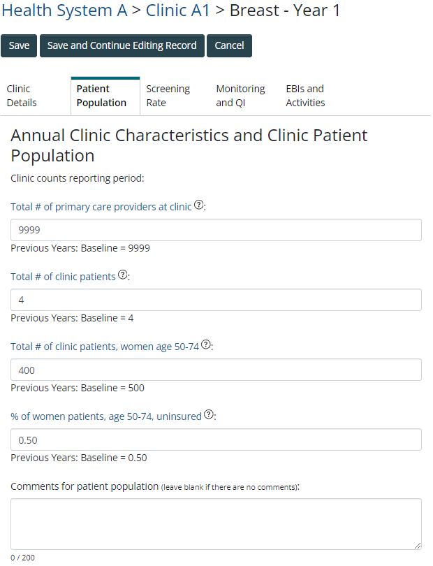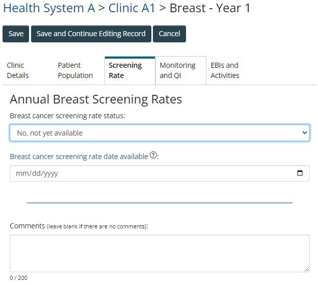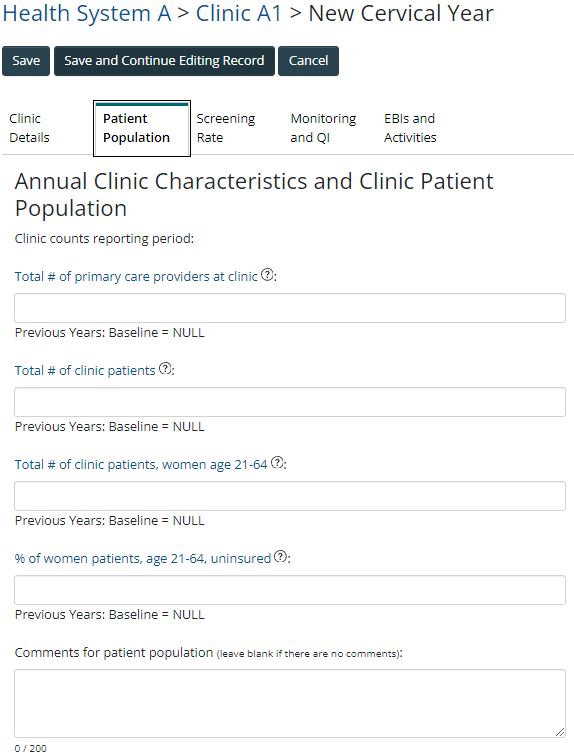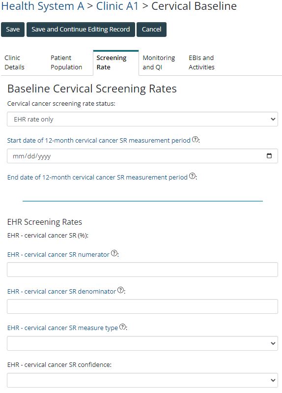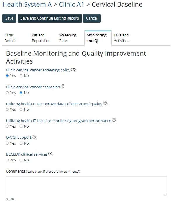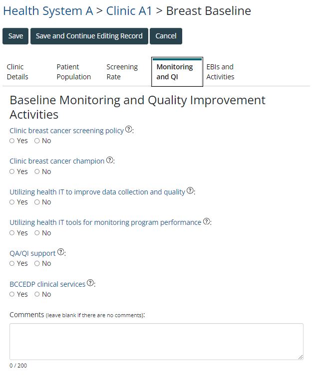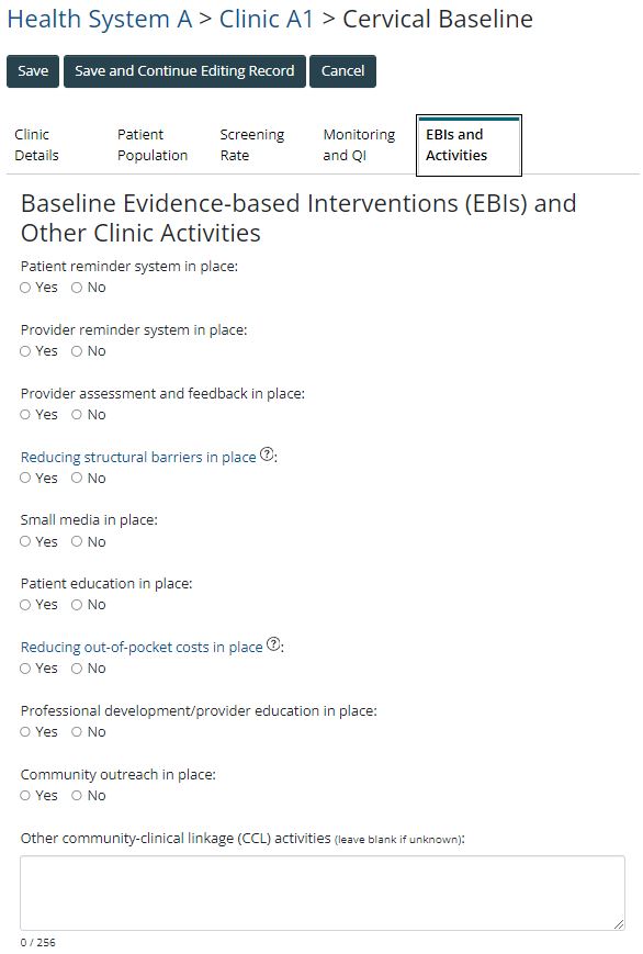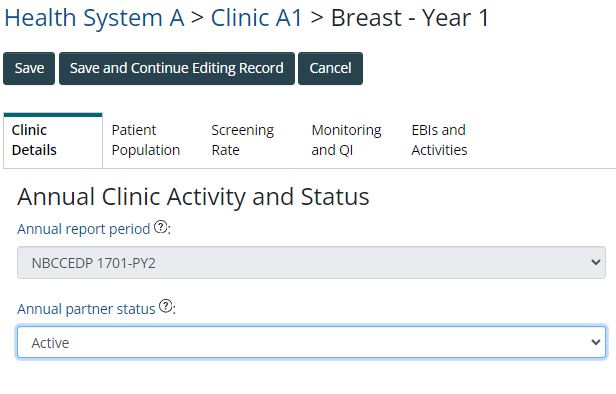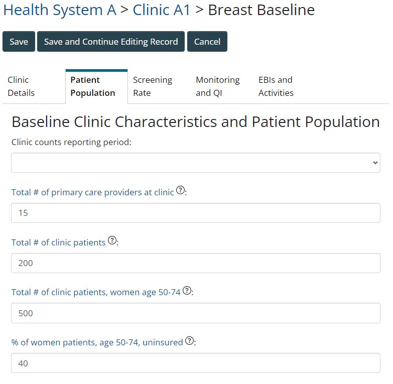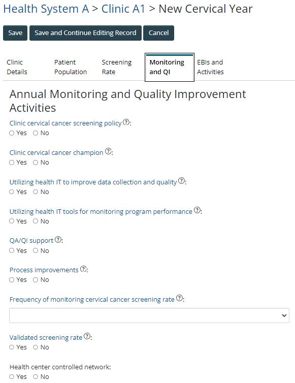 NBCCEDP Clinic-Level Data Instrument (Screenshots)