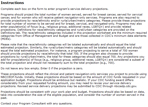 ATTACHMENT 8a: NBCCEDP Service Delivery Projections (Screenshots)