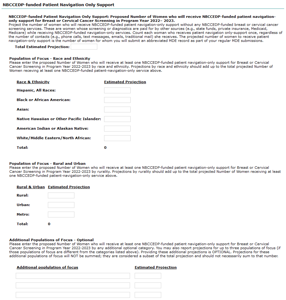 NBCCEDP-funded Patient Navigation Only Support