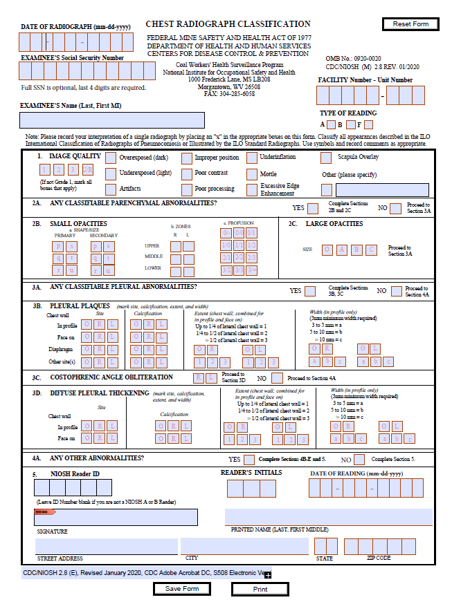 Radiograph Classification Form – Form No. CDC/NIOSH (M) 2.8