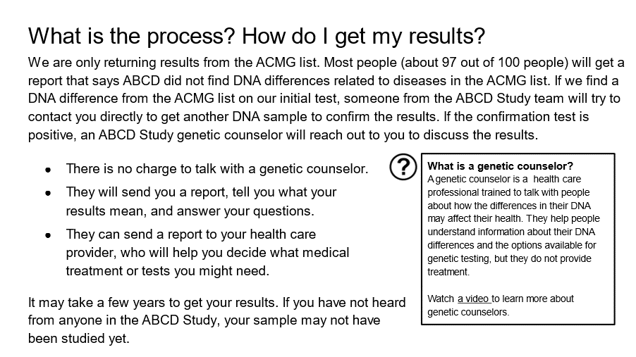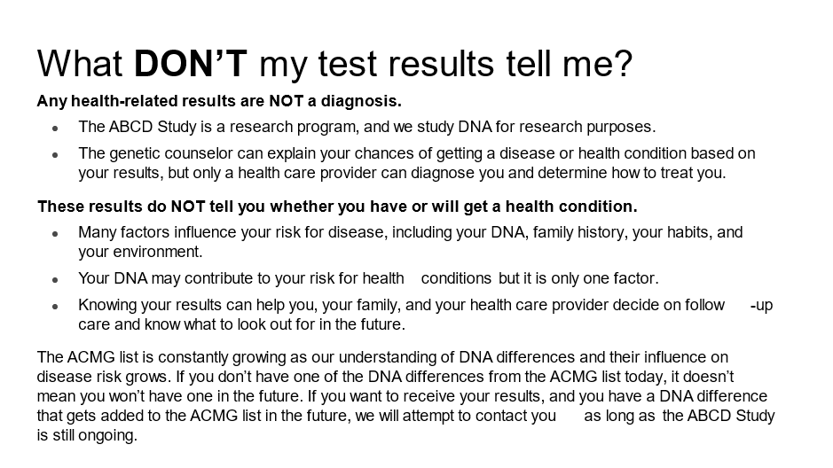 Thank you for being part of the audience feedback teams to help the Adolescent Brain and Cognitive DevelopmentSM Study or ABCD Study®! (If you are joining us for the first time, welcome!) We are talking with parents and caregivers of teens to get their perspectives on parts of a research study with other parents and caregivers of teens. This activity is part of your participation in the feedback teams. We are asking for your help because we would like to hear the perspectives of parents and caregivers of teens from different backgrounds from all over the country. Your honest feedback will help the investigators ask questions in the best way possible.