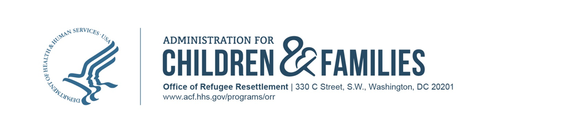 PAPERWORK REDUCTION ACT OF 1995 (Pub. L. 104-13) STATEMENT OF PUBLIC BURDEN: Through this information collection, ACF is gathering information to monitor compliance with federal practice, guidelines and requirements, provide oversite of federal funds, and provide support as needed. Information collected will be used directly to guide site visits, identify areas for technical assistance, and support recommendations and corrective actions. Public reporting burden for this collection of information is estimated to average 5 hours per grantee, including the time for reviewing instructions, gathering, and maintaining the data needed, and reviewing the collection of information. This is a mandatory collection of information under INA § 412(c)(1)(A), 8 U.S.C. 1522(c)(1)(A). An agency may not conduct or sponsor, and a person is not required to respond to, a collection of information subject to the requirements of the Paperwork Reduction Act of 1995, unless it displays a currently valid OMB control number. The OMB # is 0970-0558 and the expiration date is 11/30/2023. If you have any comments on this collection of information, please contact Ashley Davis-Barham at Ashley.Davis-Barham@acf.hhs.gov.