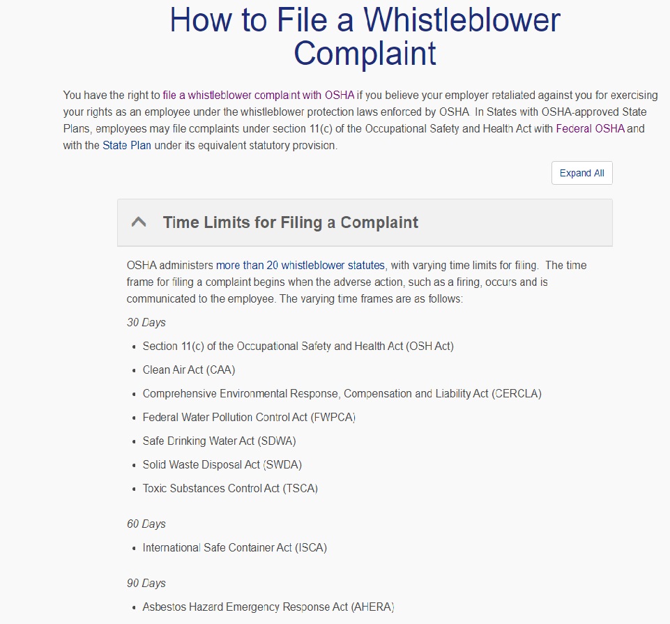 Regulations Containing Procedures for Handling of Retaliation Complaints