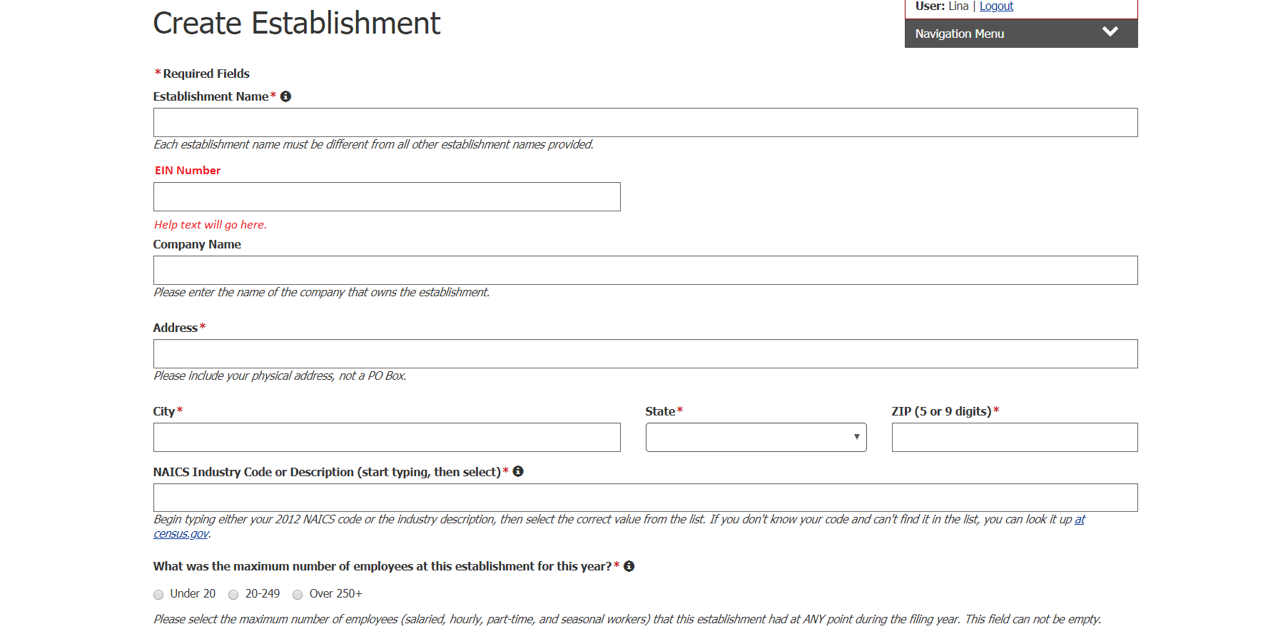 OSHA 6-40.2 OSHA Injury Tracking Application (mock-up of screen coll