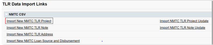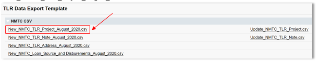 Click the "New_NMTC_TLR_Project.CSV" link to download the template.
