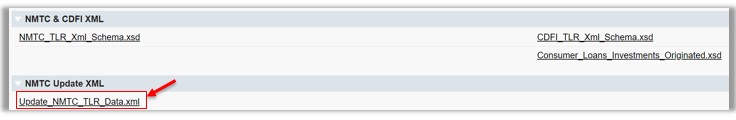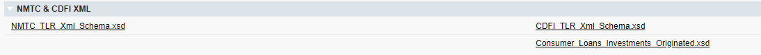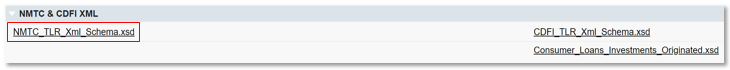 Click the "NMTC_TLR_Xml_Schema.xsd" link to download the XML Schema to use when generating an XML file. XML attribute names contain no spaces, but are otherwise identical to the corresponding data guidance field name.