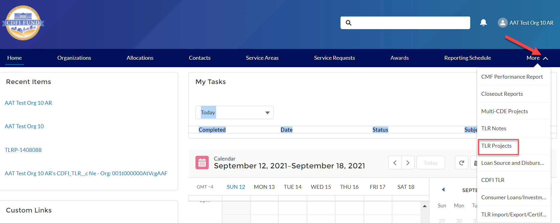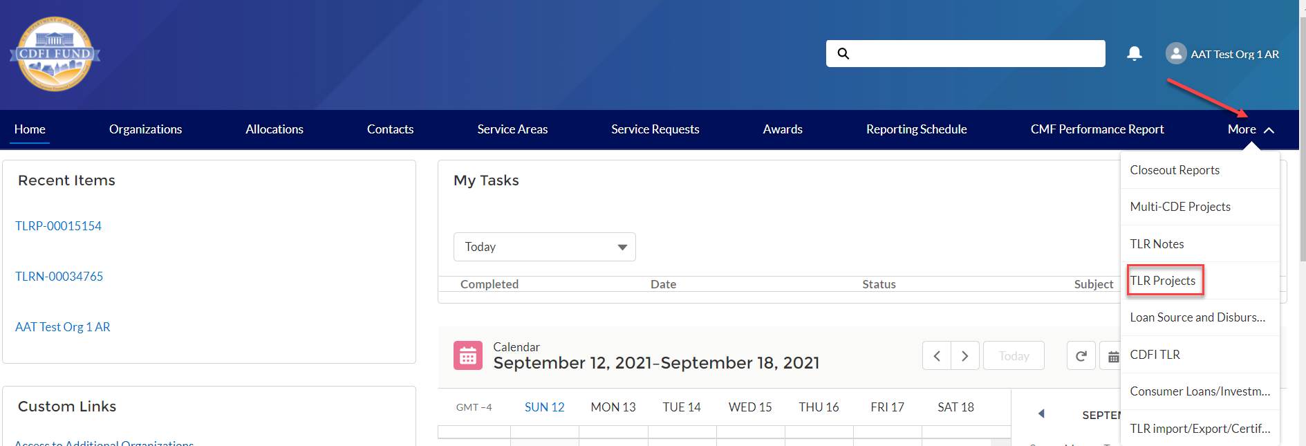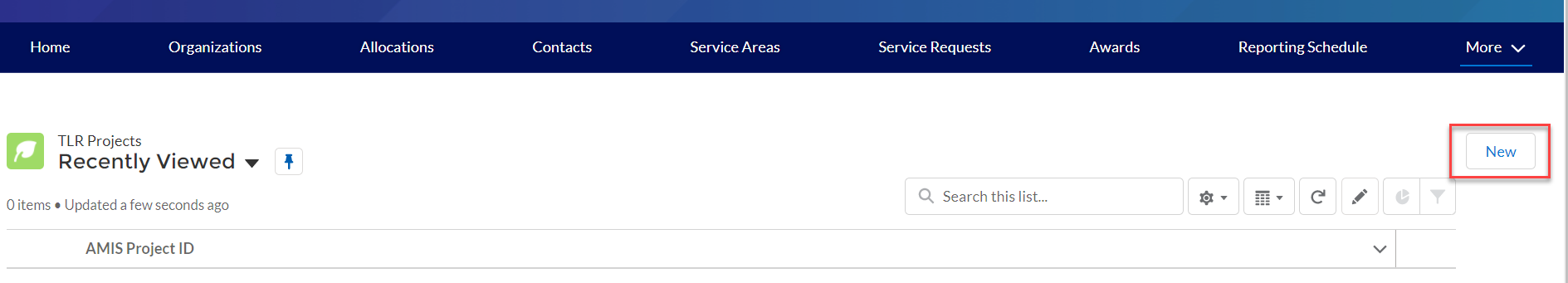 To manually begin your Transaction Level Report (TLR), log into AMIS and click on the TLR Projects tab located in the “More” dropdown.